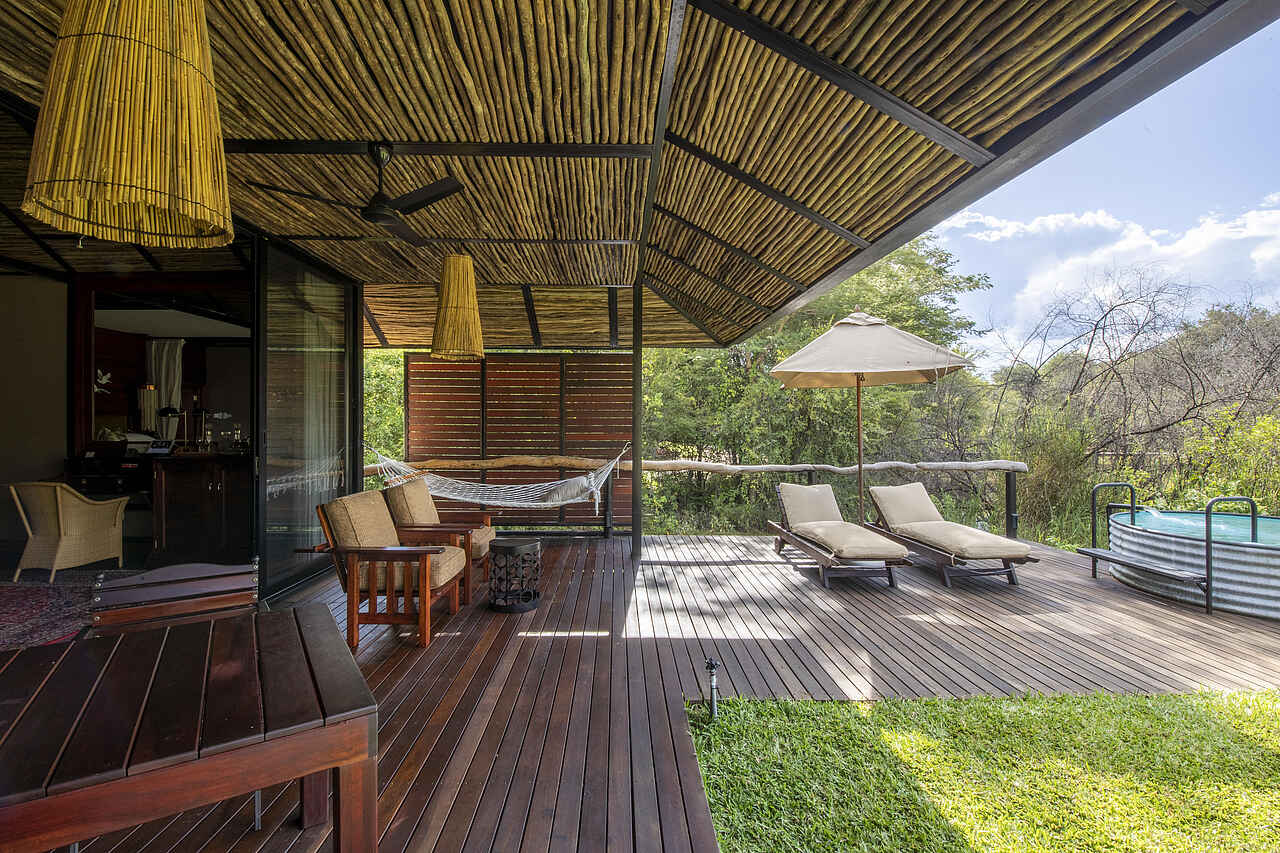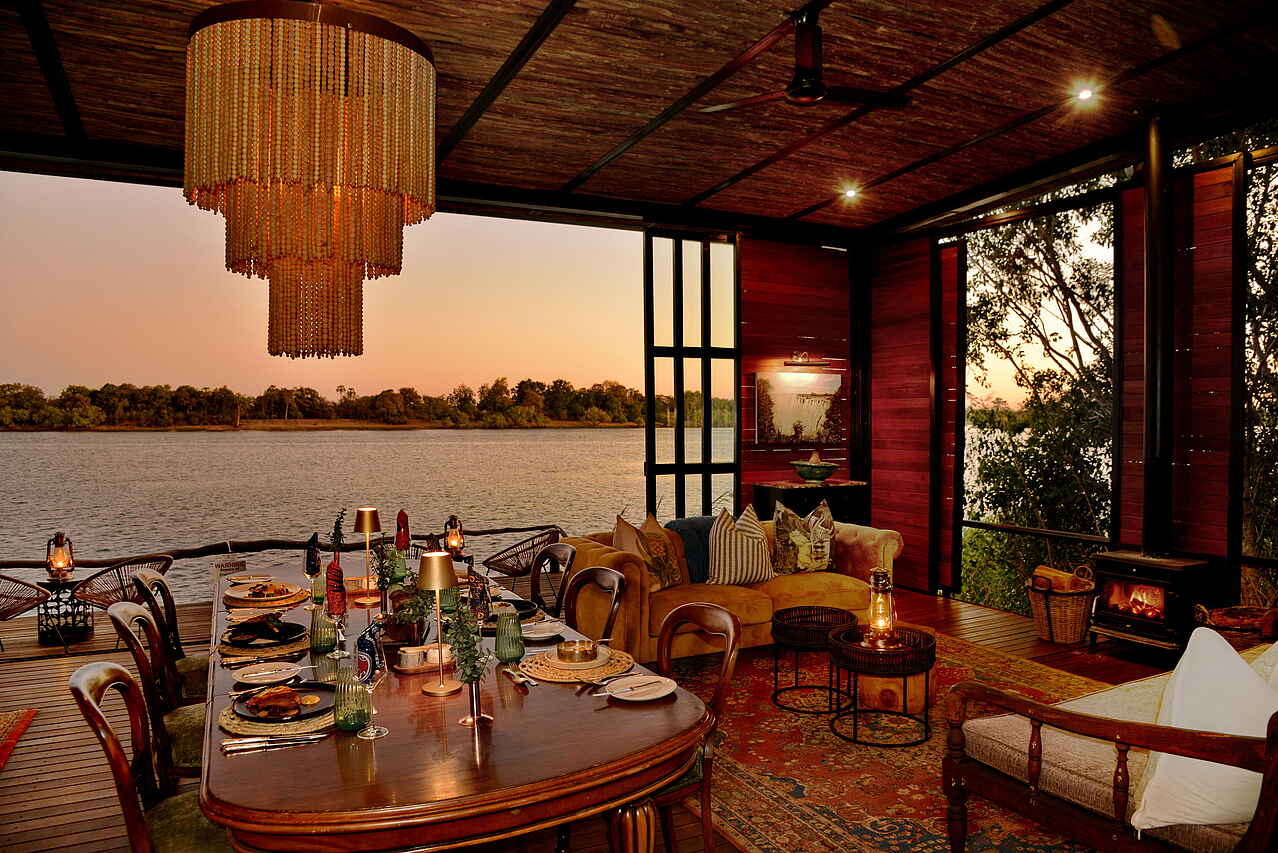 Die Mukwa River Lodge befindet sich in Sambia am breiten Zambezi River nahe Livingstone und in kurzer Distanz zu den weltberühmten Victoriafällen. Der Blick über den Fluss prägt das Erlebnis vom ersten Moment an. Jede Suite verfügt über private Außenbereiche mit Plunge Pool und freier Sicht auf das Ufer. Elefanten ziehen gelegentlich vorbei, Hippos tauchen im Fluss auf und das ständige Lichtspiel über dem Wasser erzeugt eine Atmosphäre, die man ungern verlässt. Die Lodge kombiniert exzellenten Service, viel Privatsphäre und ein elegantes Ambiente.