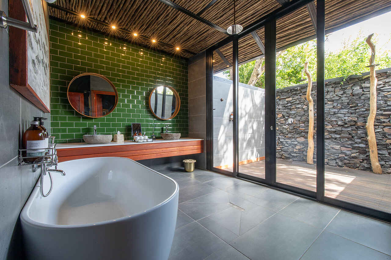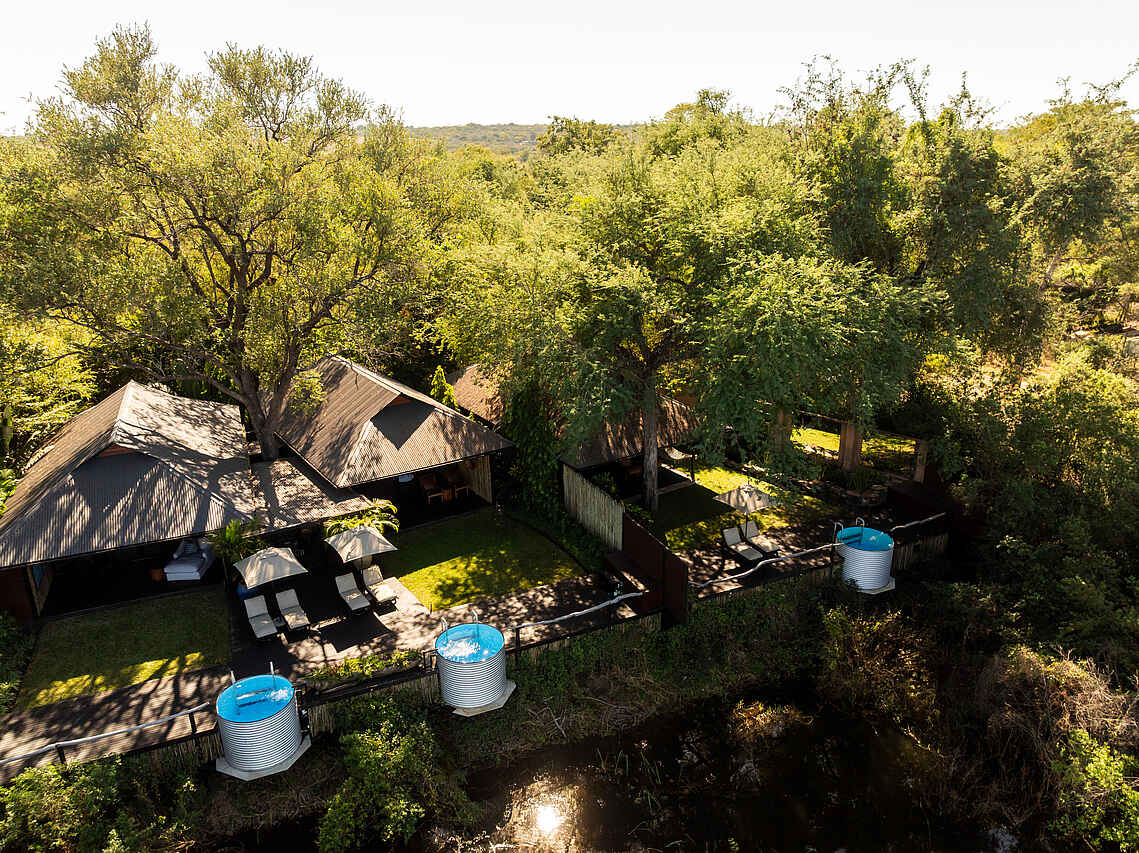 Die Suiten der Mukwa River Lodge liegen entweder direkt am Zambezi oder abgeschieden auf einer kleinen Flussinsel. Jede Unterkunft verfügt über ein großzügiges Schlafzimmer mit King-Size-Bett, feinen Stoffen und Moskitonetz. Die Ausstattung umfasst Klimaanlage, Minibar, Espressomaschine sowie eine Terrasse mit Sitzmöbeln und eigenem Plunge Pool. Das En-suite-Badezimmer ist offen gestaltet und bietet Doppelwaschbecken, eine große Innendusche, eine Doppelaußendusche sowie eine Badewanne mit Blick ins Grüne. Die Möbel wirken hochwertig, warm und im Stil afrikanischer Handwerkskunst. Das Familiencottage bietet zwei Schlafzimmer, jeweils mit eigenem En-suite-Badezimmer, sowie einen Wohn- und Essbereich, Küche, Garten und Swimmingpool.