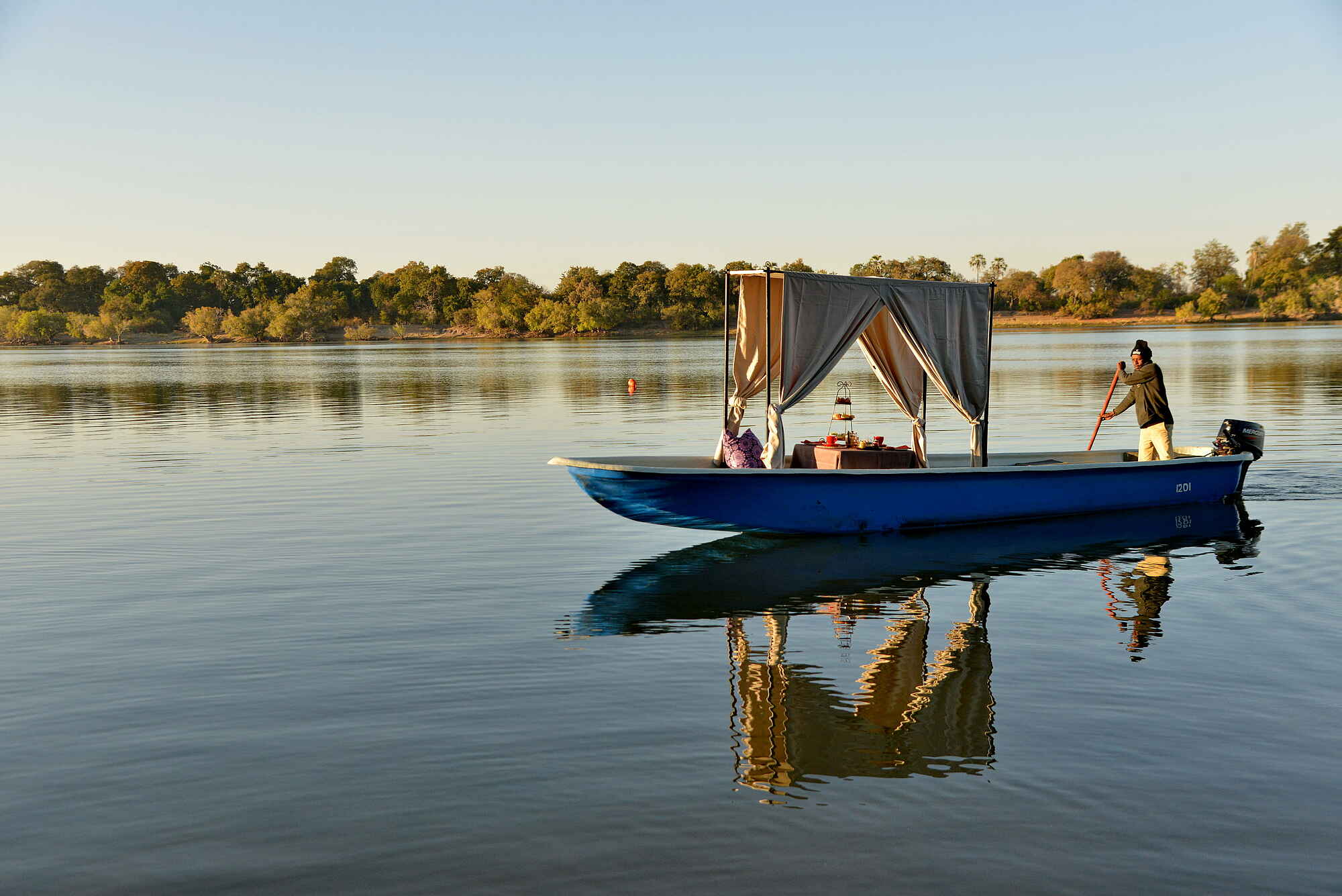 Am Zambezi herrscht tropisch warmes Klima. Die Trockenzeit zwischen Mai und Oktober gilt als optimale Reisezeit, da Tiere häufiger am Fluss erscheinen und das Wetter stabil ist. Während der Regenzeit von November bis März wird die Landschaft grüner und dichter, was besonders für Vogelbeobachtung spannend ist. Bootsaktivitäten sind dann je nach Wasserstand intensiver. Wer bestmögliche Tierbeobachtungen und klare Tage bevorzugt, reist idealerweise während der trockenen Monate. Wer sattes Grün, starke Flusskulissen und ruhige Reiseperioden schätzt, findet auch in der Regenzeit reizvolle Bedingungen.