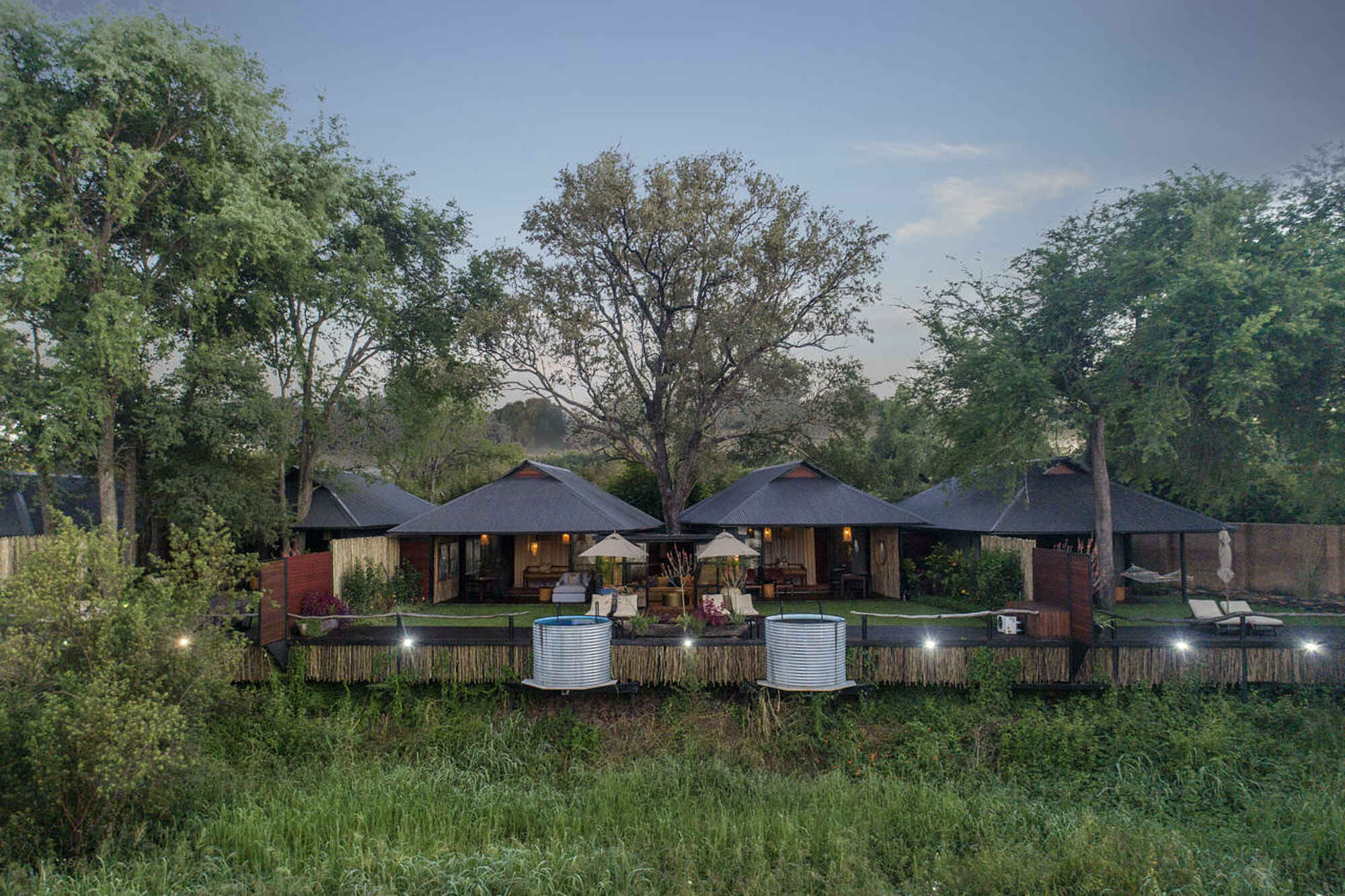 Am Zambezi herrscht reges Tierleben. Elefanten erscheinen regelmäßig am Flussufer, manchmal direkt vor den Suiten. Hippos sind fast täglich zu hören und häufig zu sehen. Krokodile liegen am Ufer oder gleiten durch das Wasser. Verschiedene Antilopenarten nutzen die Ebenen rund um das Camp, während zahlreiche Vogelarten zwischen Ufer und Baumkronen wechseln. Mit etwas Glück zeigen sich sogar Büffel. Wer an Safaris teilnimmt, hat zusätzlich Chancen auf weitere Arten der Region. Naturbeobachtung beginnt hier bereits von der eigenen Veranda aus, was den Aufenthalt besonders intensiv macht.