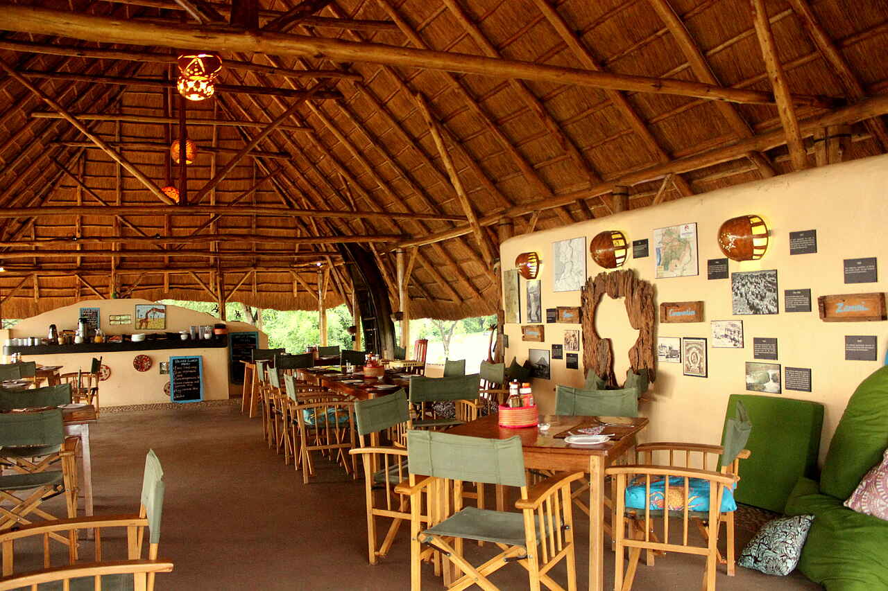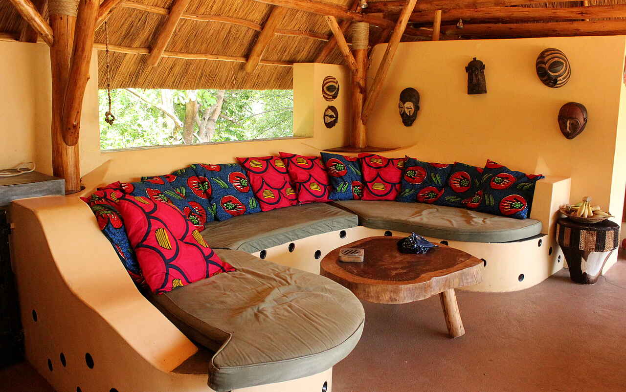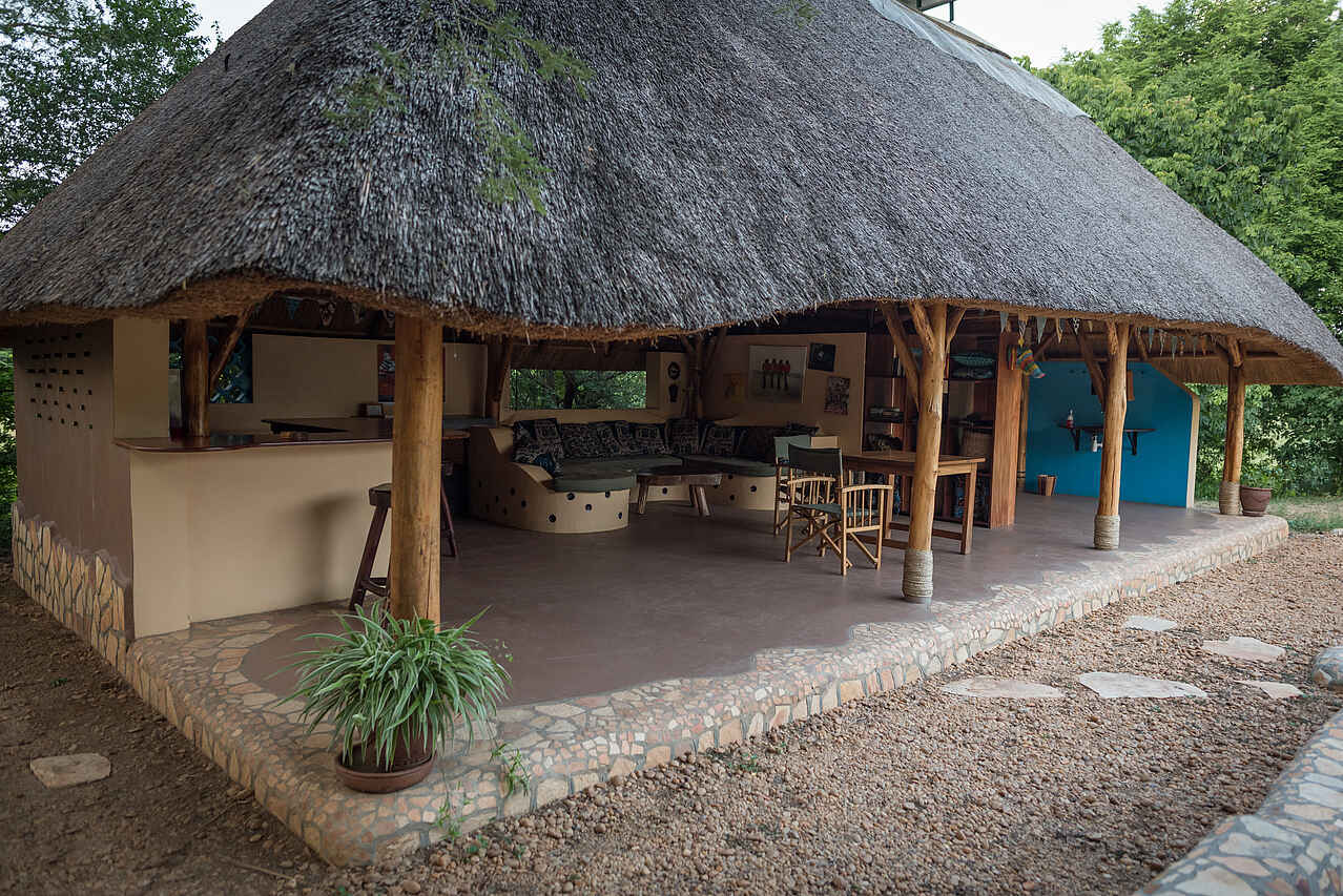 Das reetgedeckte Hauptgebäude liegt erhöht auf einer Uferbank und umfasst das Restaurant und die Bar. Angrenzend befindet sich die Outdoor-Lounge mit rustikal-stilvollen Sofas. Von hier ergibt sich ein bemerkenswerter Blick auf den Nil und den Murchison Falls Nationalpark. Wenige Meter vom Haupthaus entfernt befindet sich eine Feuerstelle sowie die Bootsanlegestelle. Etwas abgelegen vom Haupthaus befindet sich im Schatten der Bäume ein Pool, der über einen Pfad erreichbar ist. Das Becken ist in einen Erwachsenen- und Kinderbereich unterteilt. Hier befinden sich eine weitere Lounge mit Bar, zudem Duschen, Umkleidekabinen, WC. Badetücher liegen bereit. WiFi ist im Pool-Bereich vorhanden.
