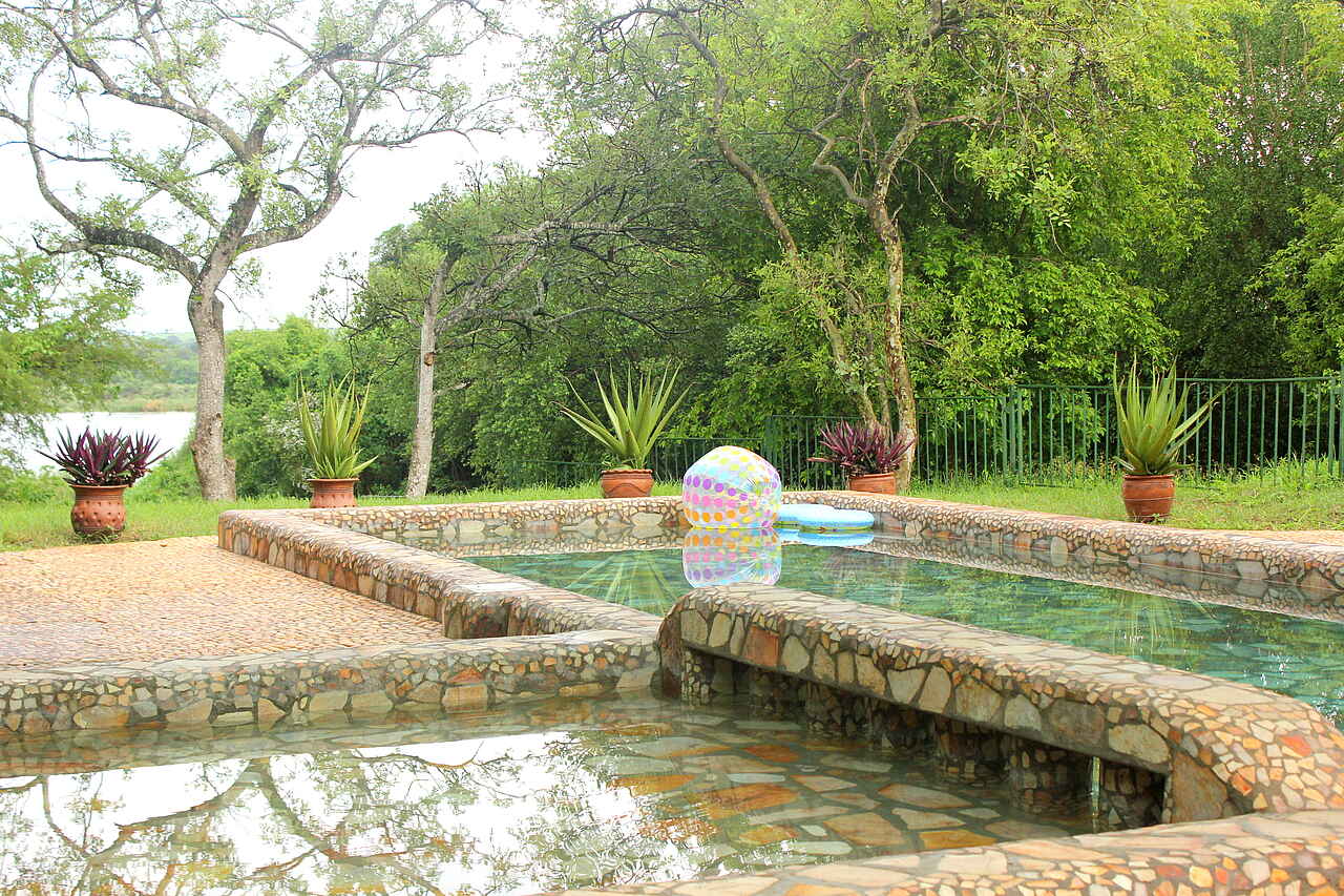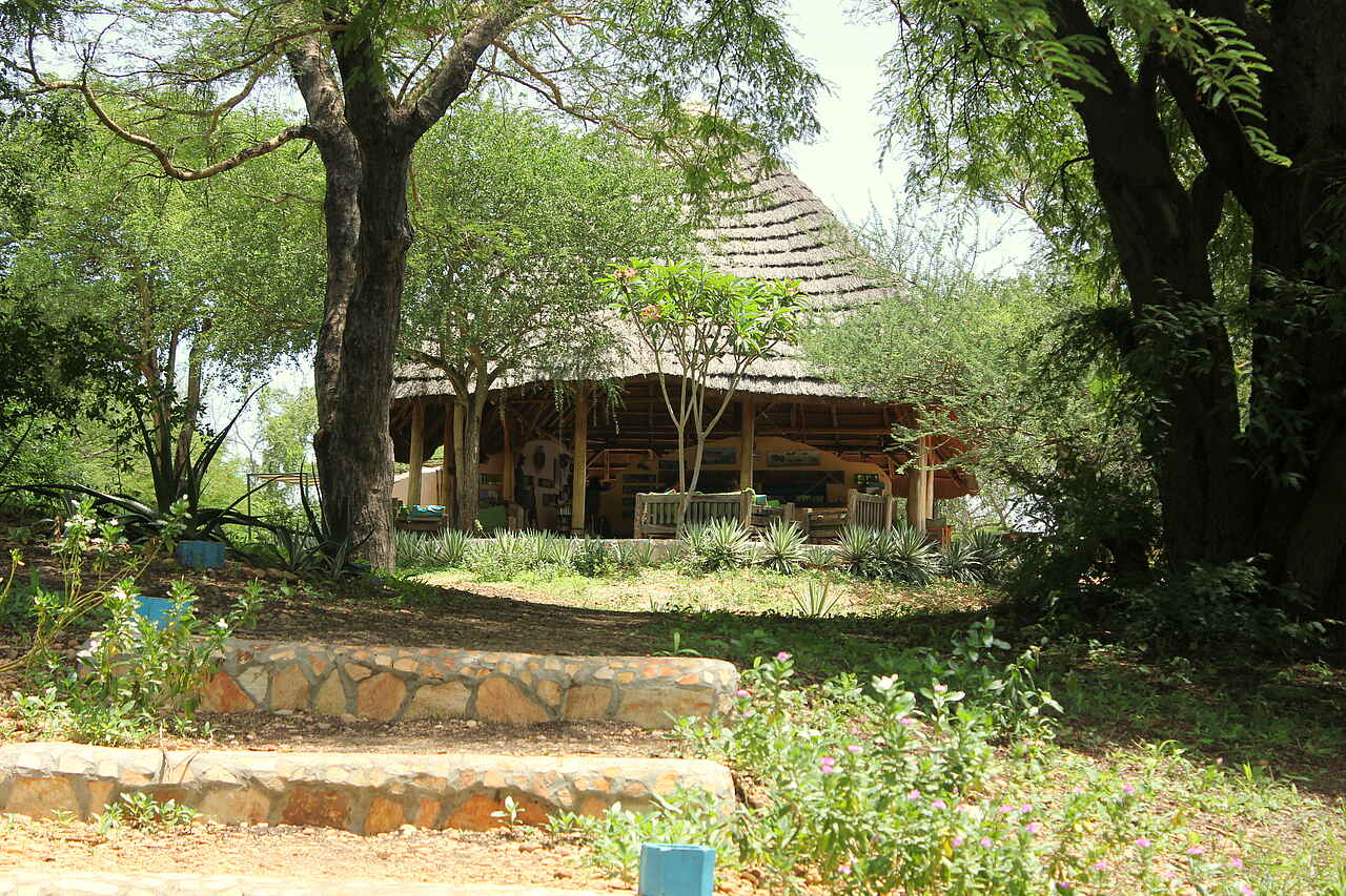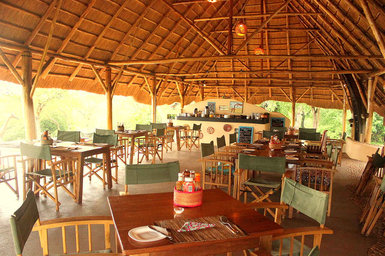 Das reetgedeckte Hauptgebäude liegt erhöht auf einer Uferbank und umfasst das Restaurant und die Bar. Angrenzend befindet sich die Outdoor-Lounge mit rustikal-stilvollen Sofas. Von hier ergibt sich ein bemerkenswerter Blick auf den Nil und den Murchison Falls Nationalpark. Wenige Meter vom Haupthaus entfernt befindet sich eine Feuerstelle sowie die Bootsanlegestelle. Etwas abgelegen vom Haupthaus befindet sich im Schatten der Bäume ein Pool, der über einen Pfad erreichbar ist. Das Becken ist in einen Erwachsenen- und Kinderbereich unterteilt. Hier befinden sich eine weitere Lounge mit Bar, zudem Duschen, Umkleidekabinen, WC. Badetücher liegen bereit. WiFi ist im Pool-Bereich vorhanden.