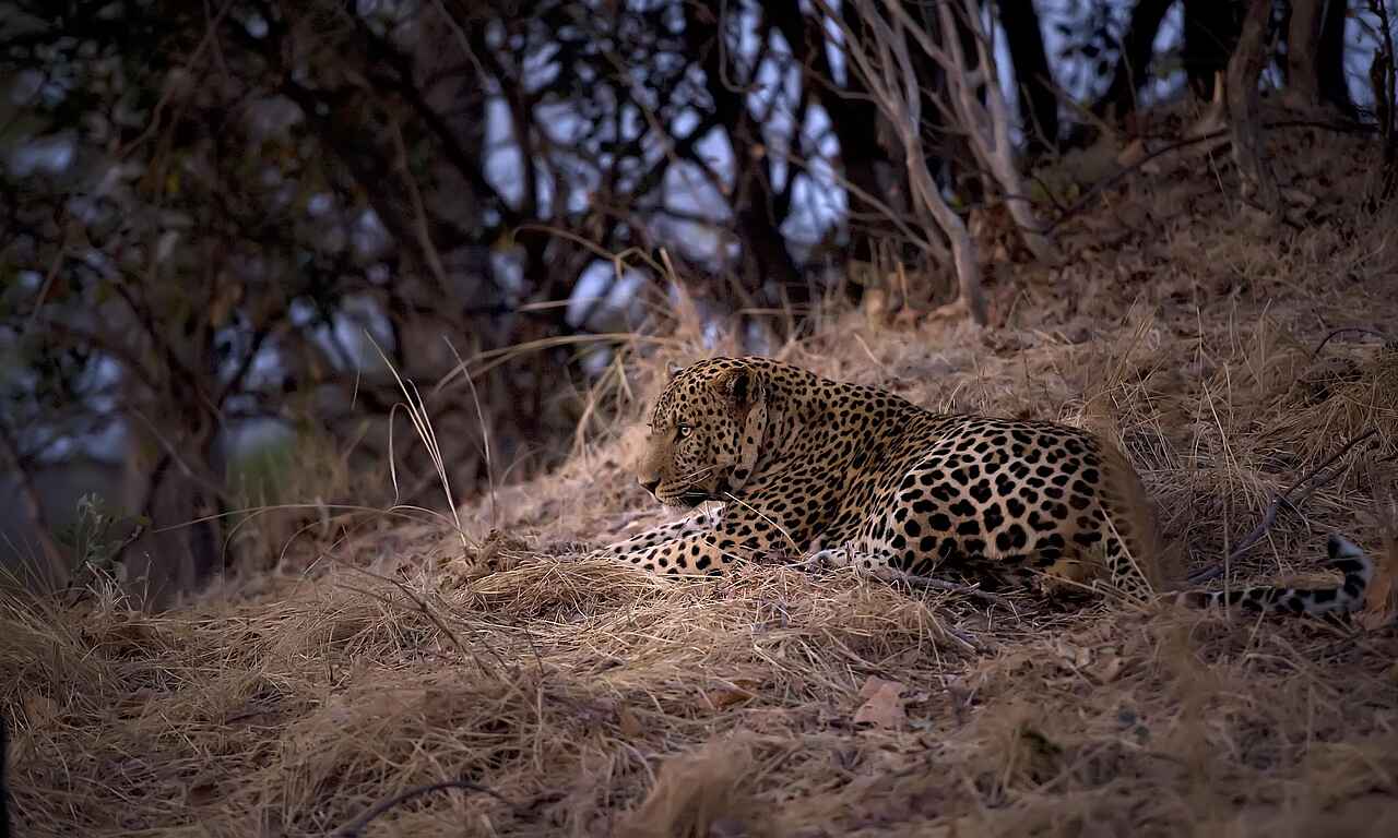 Leoparden, Hippopotamus, Zwergohreule, Vögel, Rote Moorantilope, verschiedene Pflanzenfresser, stellenweise Löwen, Wildhunde