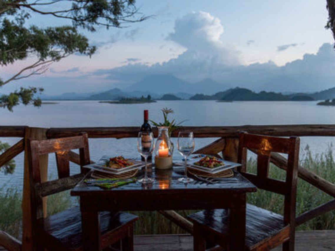 Das Restaurant im Mutanda Lake Resort bietet eine abwechslungsreiche Küche mit frischen, lokalen Zutaten zum Teil aus dem eigenen Garten. Die Gäste können zwischen internationalen Gerichten und ugandischen Spezialitäten wählen. Mahlzeiten werden im Restaurant mit Seeblick serviert, und es gibt die Möglichkeit, private Dinner auf der eigenen Terrasse zu genießen. Das Frühstücksbuffet umfasst eine Auswahl an Früchten, Gebäck und warmen Speisen, während das Mittag- und Abendessen à la carte serviert wird. Inklusive sind alle Mahlzeiten sowie eine Auswahl an Getränken (außer Premium-Alkoholika).