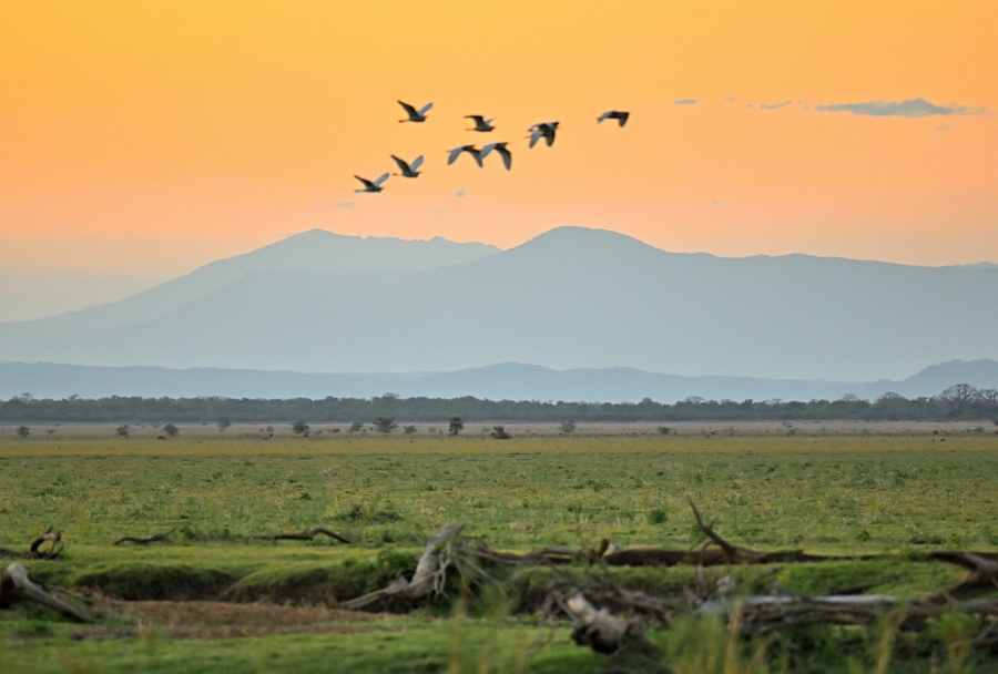 Die Wasserläufe sind Lebensraum für Krokodile und Flusspferde, während Greifvögel wie Schreiseeadler und Geier am Himmel kreisen. Mit über 400 Vogelarten ist der Park ein Hotspot für Vogelbeobachtungen - darunter Sattelstörche, Reiher, Bienenfresser und farbenfrohe Turakos. Die abwechslungsreiche Landschaft aus Flussauen, Wäldern und Grasland schafft ideale Bedingungen für ein faszinierendes Safari-Erlebnis.