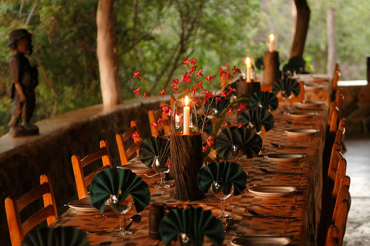 Vollpension: alle Getränke inklusive. Die Gäste speisen gemeinsam im Speisesaal oder unter freiem Himmel.