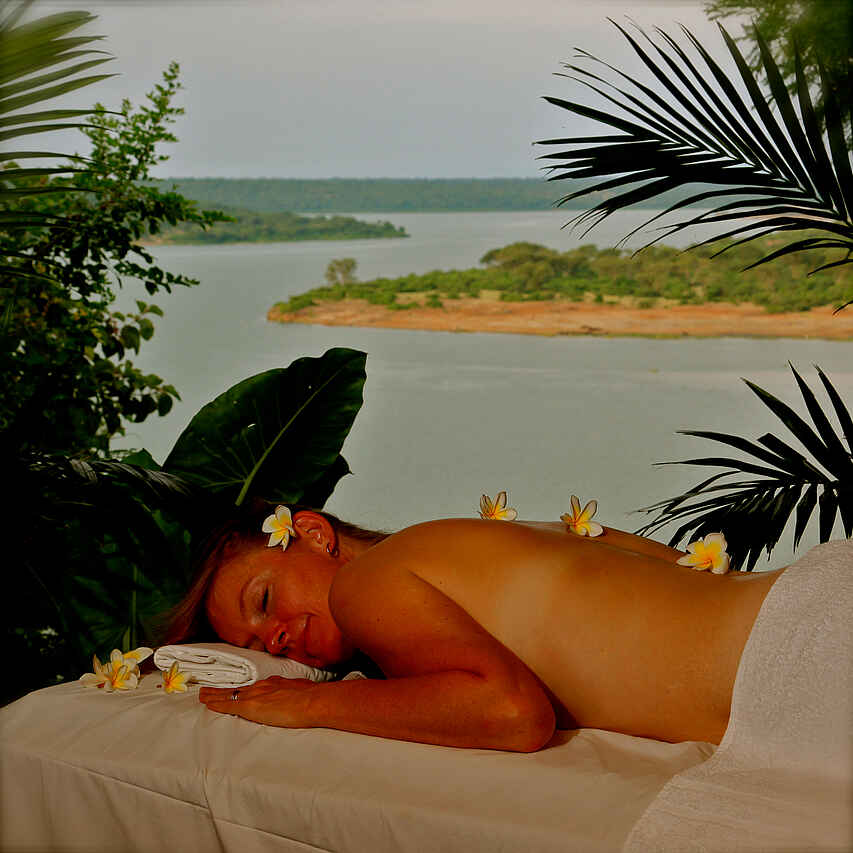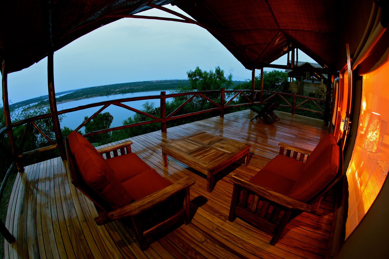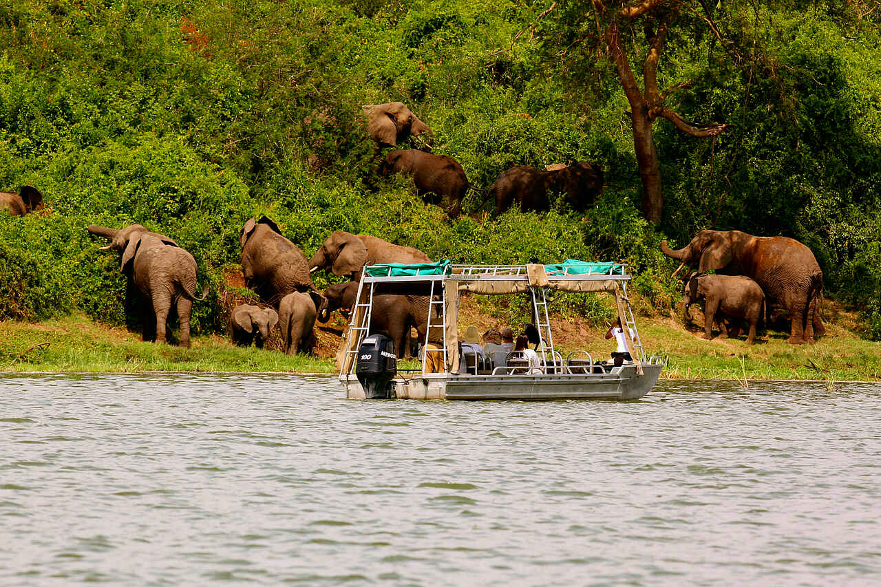 Luxuriöse Anlage auf einer kleinen Halbinsel im Queen Elizabeth National Park mit weitläufigen Blick auf den breiten Kazinga Kanal. Beobachtung zahlreicher Tierarten in unmittelbarer Nähe zur Lodge. Über 600 unterschiedliche Vogelarten und ca. 100 Säugetierarten. Fluss-Safari zwischen Lake Edward und Lake George