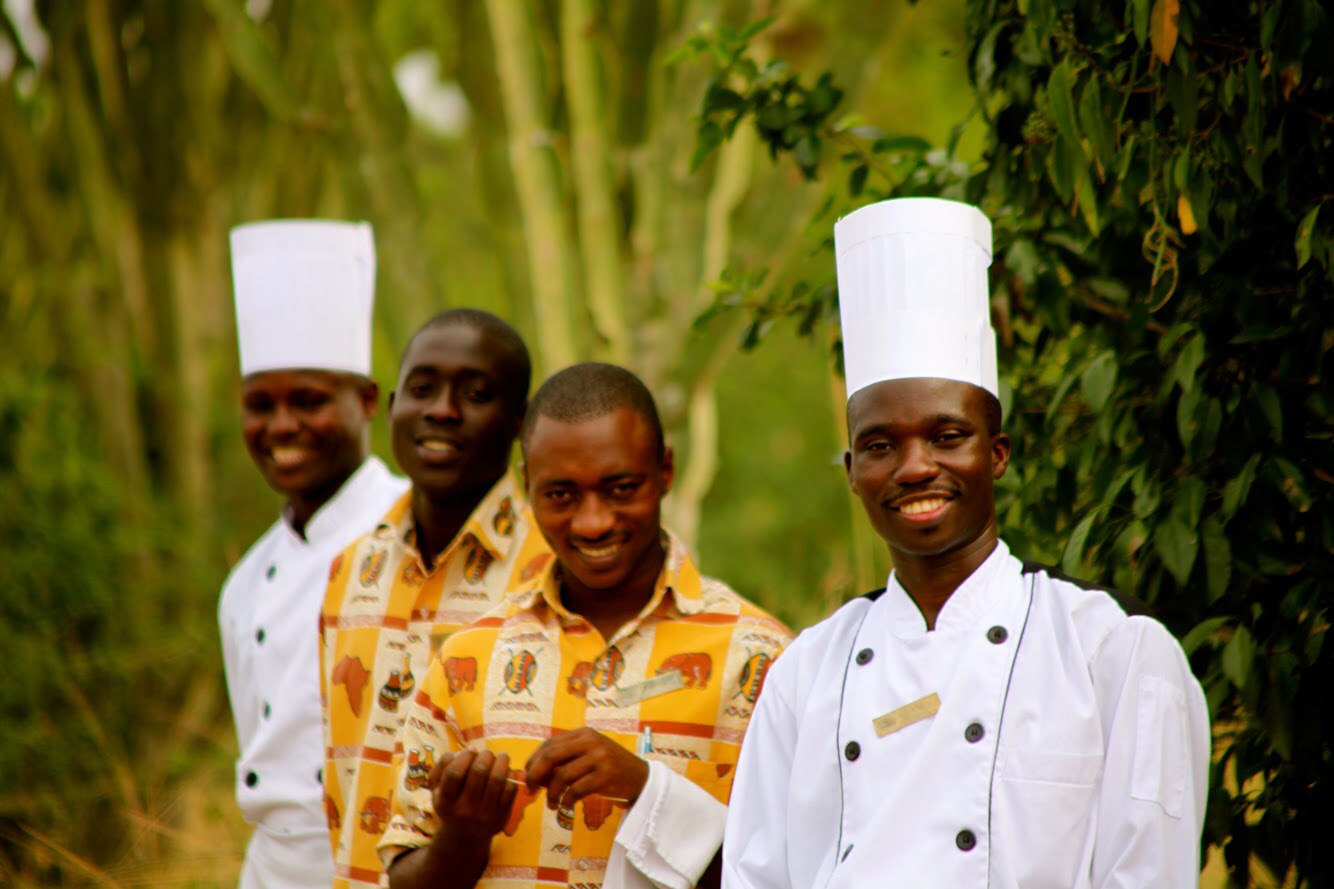 Vollpension: 3 Mahlzeiten, frisch zubereitete nationale sowie internationale Gerichte, Essbereich im Inneren sowie auf der Terrasse des Restaurants mit Ausblick auf den Kazinga Kanal, Option Bed&Breakfast ebenfalls buchbar, auf Anfrage stehen persönliche Serviceangebote zur Verfügung, wie z.B. Bush Breakfast
