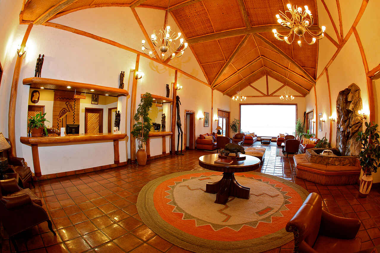 Auf einer Anhöhe in Mweya liegende Lodge mit Panoramablick über den tiefer gelegenen Flusslauf des Kazinga Kanals sowie über die Ufer des Lake Edwards. Farblich in die Umgebung integriertes Hauptgebäude mit Lobby und Aufenthaltsraum, Konferenzraum für Veranstaltungen, Business Center mit Internetzugang und Souvenirladen. Hauseigenes Restaurant mit nationalen sowie internationalen Gerichten und Innen- und Außenbereich sowie komfortable Tembo Bar ebenfalls im Hauptbereich der Anlage. Swimmingpool mit Poolbar und dazugehörigen Sonnendeck unmittelbar vor dem Hauptgebäude. Ein hauseigener Wellnessbereich befindet sich ebenfalls auf dem Gelände der Lodge. Das Mweya Information Center befindet sich nur wenige Gehminuten von der Lodge entfernt.