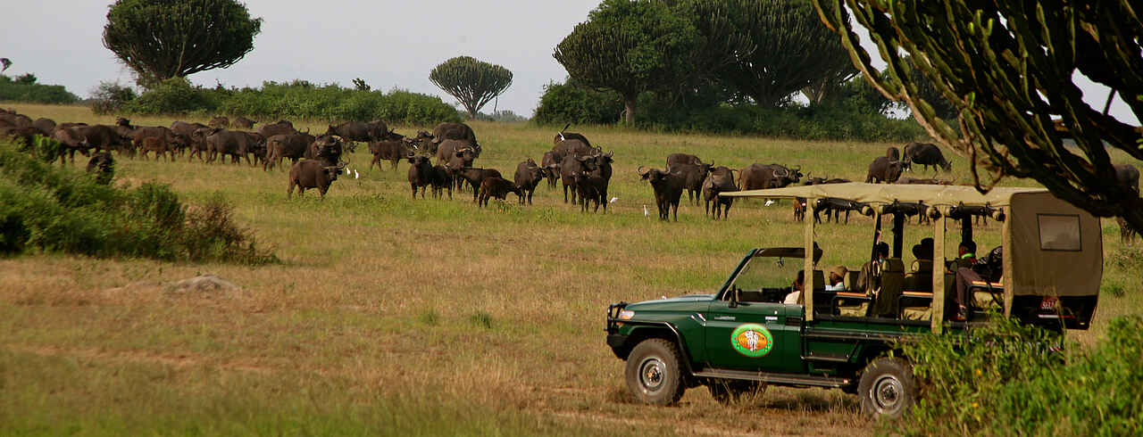 Artenreiche Region mit über 600 unterschiedlichen Vogelarten und ca. 100 Säugetierarten. Viele können bereits von der Lodge und den Zimmern aus beobachtet werden. Safari Drives durch den Nationalpark, Bootstouren auf dem Kazinga Kanal zum Lake Edward und Lake George, Expeditionen zu den Kraterlandschaften ehemals aktiver Vulkane im Nationalpark, Schimpansen und Gorilla Trekking, Wanderungen zum Aussichtspunkt Pelican Point am Lake Edward