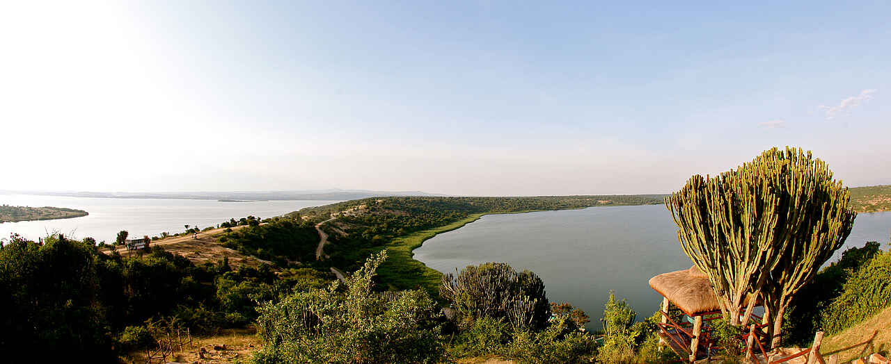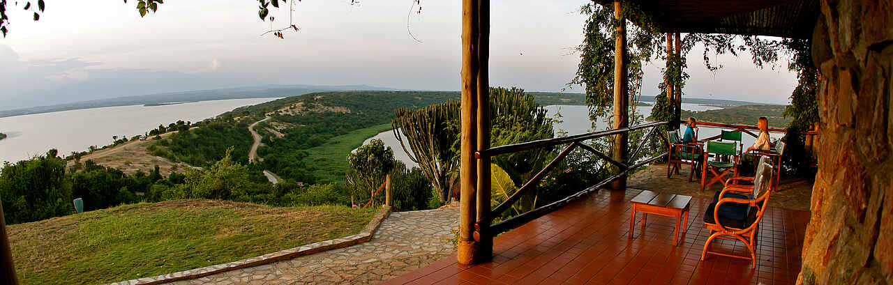 Im westlichen Uganda auf der grasigen Halbinsel Mweya am Lake Edward, eingebettet in den Queen Elizabeth National Park