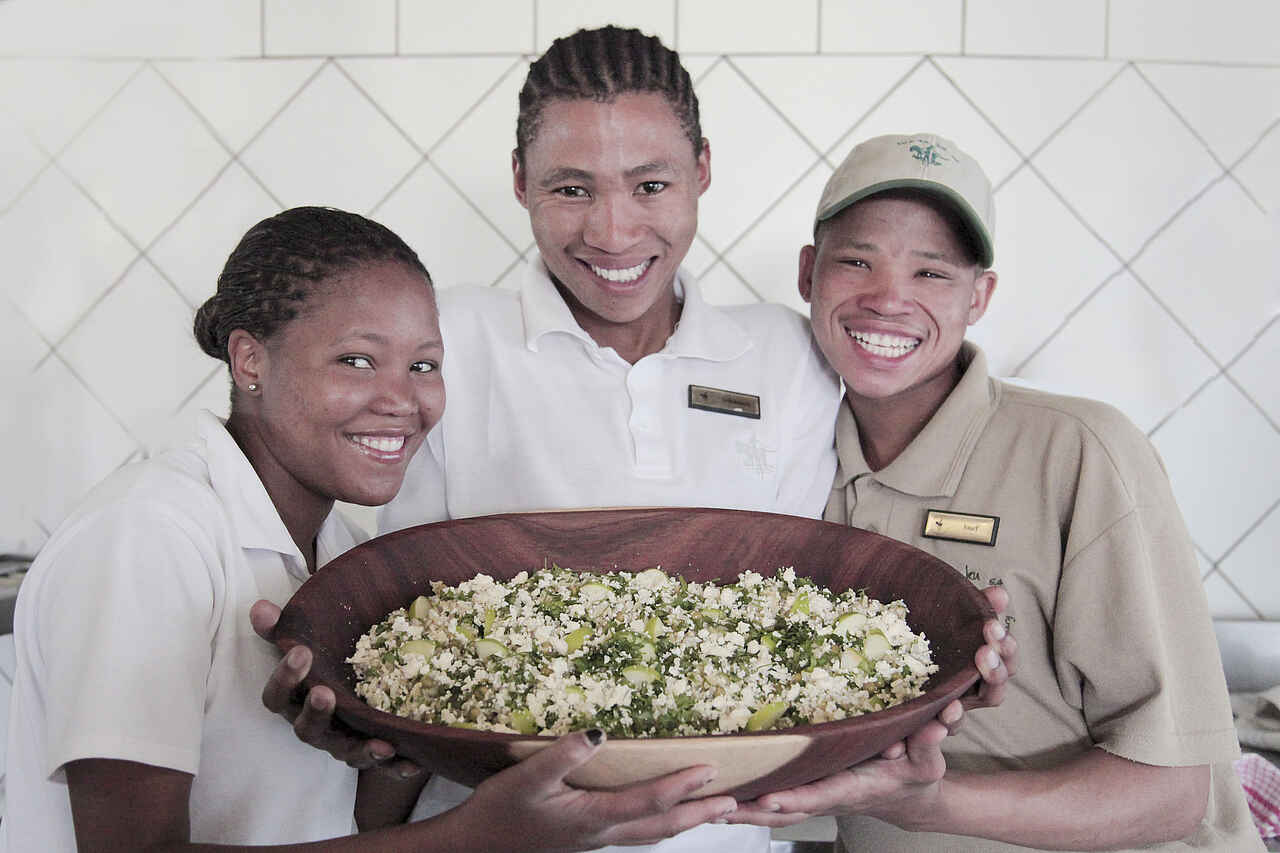 Bed & Breakfast mit Dinner oder Vollpension. Preisgekrönte euro-afrikanische Küche, Frühstück, Lunch, Drei-Gänge-Dinner. Nach vorheriger Absprache auch spezielle Menüs, Sonntags Lunchbuffet. Gespeist wird im Speisesaal oder im Freien. Große Auswahl an Weinen, Bieren und Spirituosen. Selbstversorger in den Holiday Homes ebenfalls möglich.