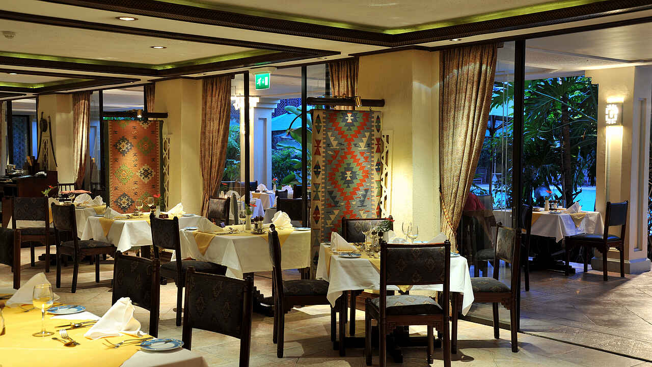 Serviert wird nationale und internationale Küche in 2 Restaurants: Café Maghreb Restaurant und The Mandhari Restaurant; zudem 3 Bars: The Ethiopian-Aksum Bar, The Bambara Lounge, eine Poolbar. Kindermenüs werden angeboten.