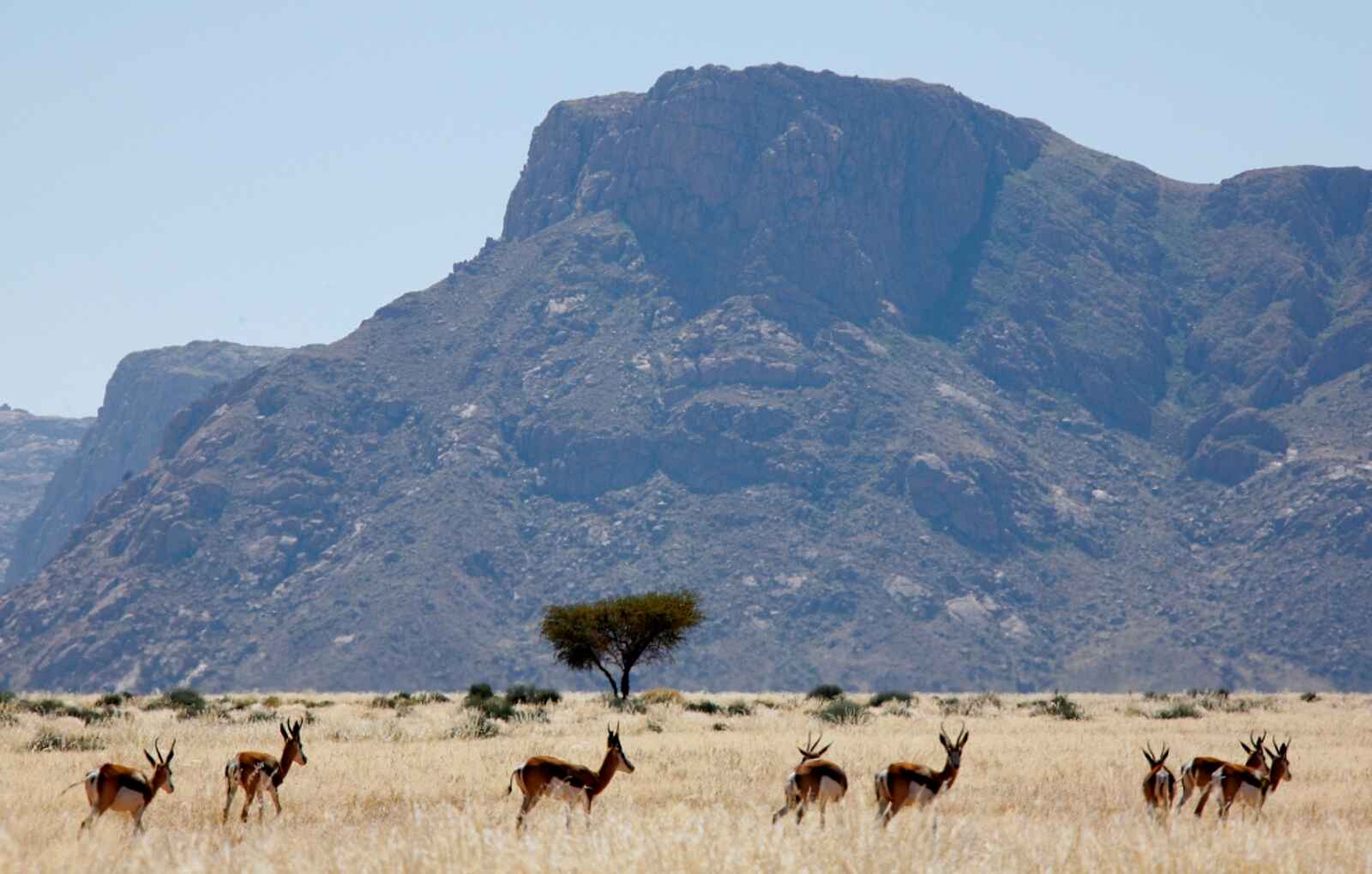 Namibia. Das Namtib Biosphärenreservat liegt am Rande des Namib-Naukluft Parks in einem Tal der Tirasberge. Ringsum ragen rauhe Berge hoch über weite Flächen empor. Offene Weiten bieten viel unberührte Natur und absolute Wüstenstille.