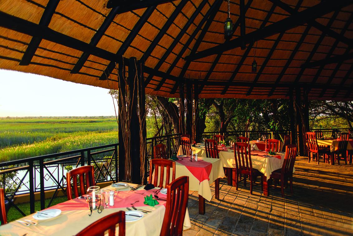 Das Frühstück wird im Buffetstil auf der Terasse neben der Kücke und das Abendessen auf der Terrasse mit Blick auf den Kwando serviert. Es wird eine Auswahl von afrikanischen, südafrikanischen und internationalen Gerichten serviert. Die Bar ist gut bestückt.