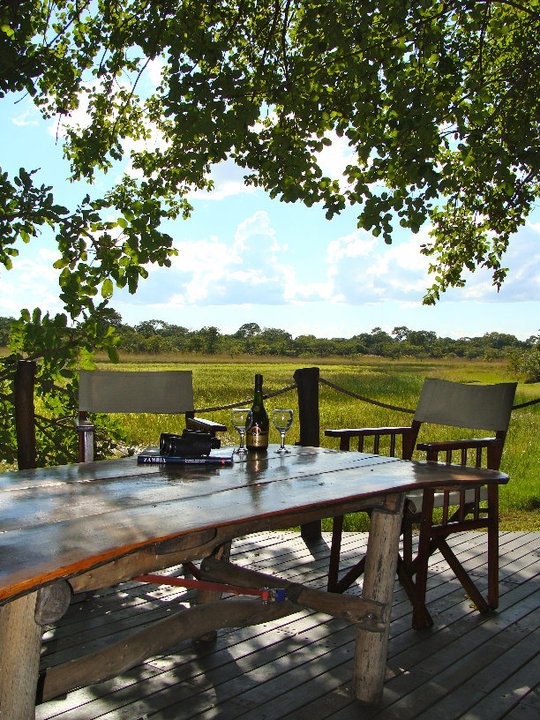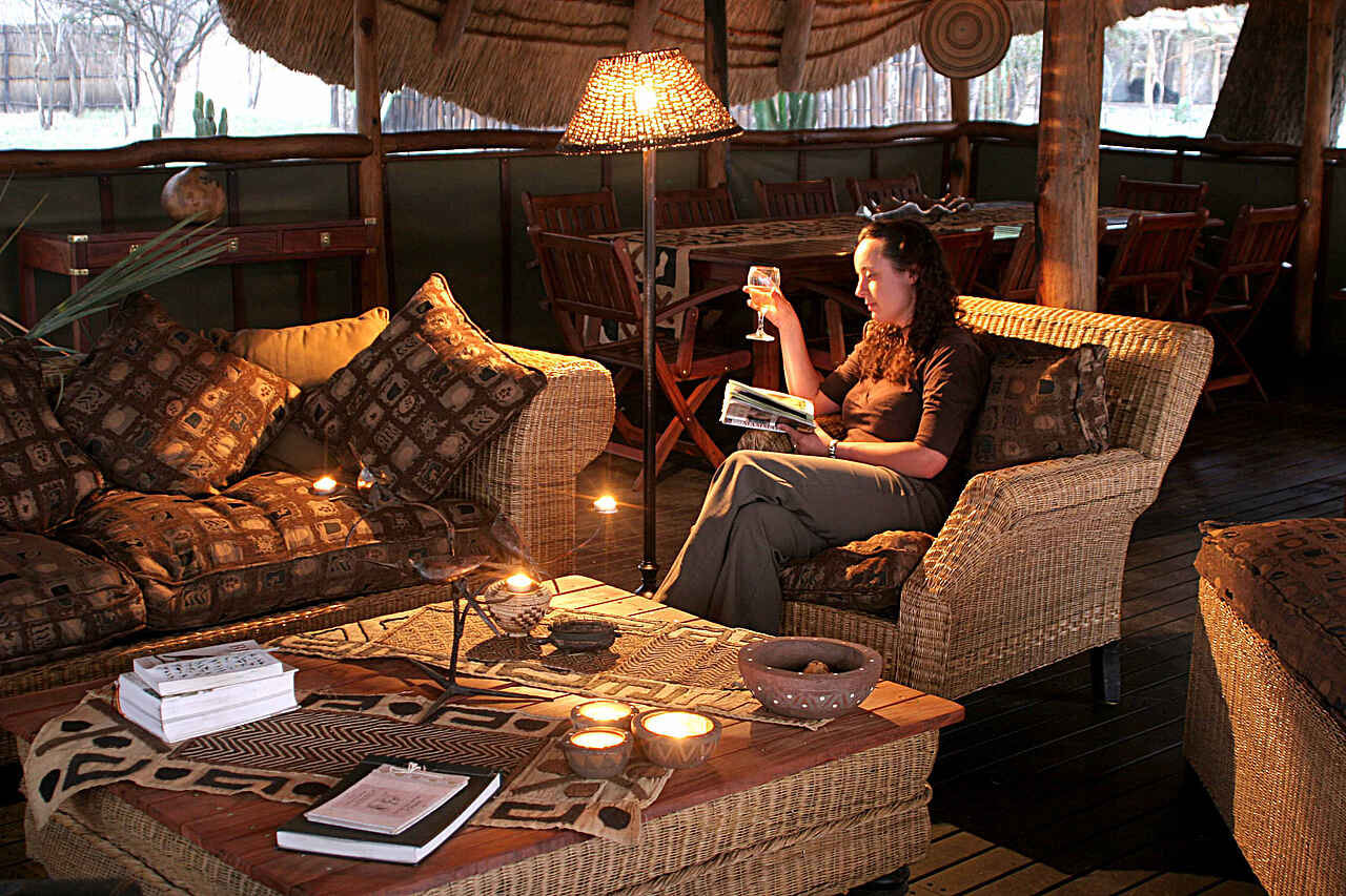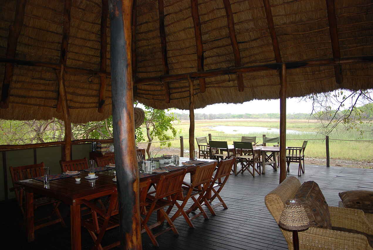 Reetgedecktes, auf einer Plattform gebautes Hauptgebäude zwischen alten Bäumen mit zwei großen Esstischen, Lounge mit Korbmöbeln und seitlich angeordneter Bar. Nach vorn hin öffnet sich das Gebäude zum Nandangwe Pool hin, einem permanent wasserführenden Teil des Kasha River. Neben dem Hauptgebäude gibt es eine Feuerplatz auf einer Steinplattform und ein großes unbedachtes Deck als Verlängerung der Lounge. Geschlossen jeweils von Mitte November bis Mitte Mai.