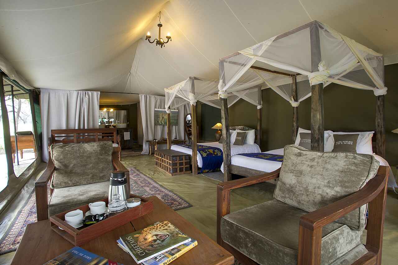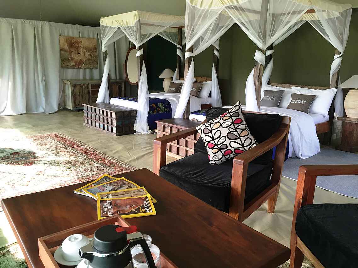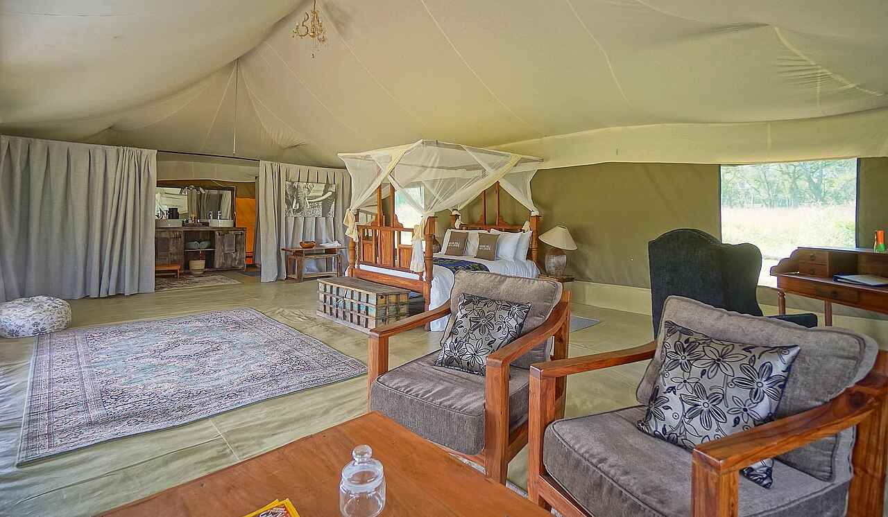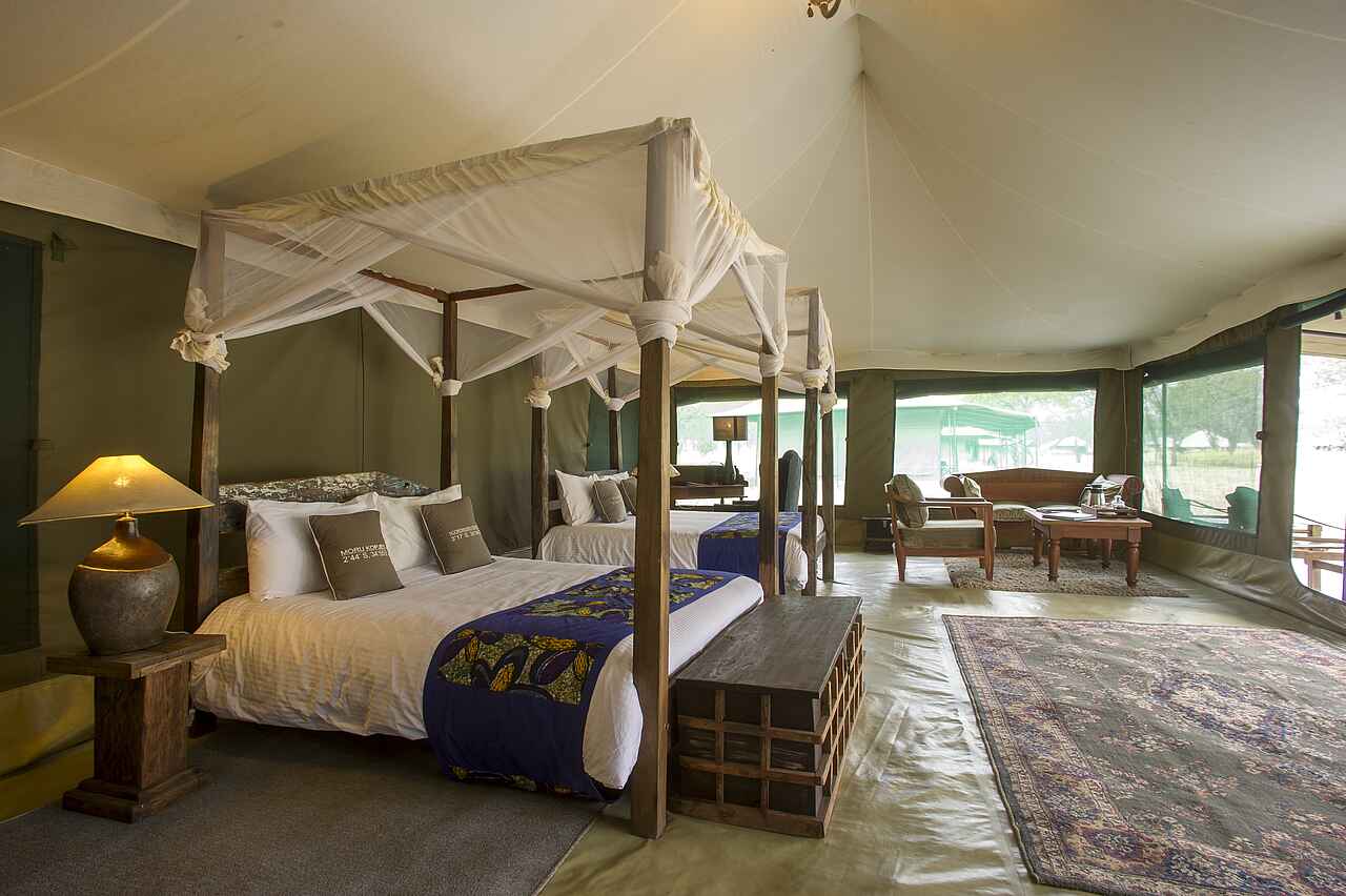 Das Naona Moru Camp bietet ungewöhnlich großzügig gestaltete Gästezelte und eignet sich darum besonders für Familien. Es liegt relativ nahe bei den für die Beobachtung von Löwen, Geparden und Leoparden besonders interessanten Moru Kopjes, die man aus vielen Dokumentationen kennt.