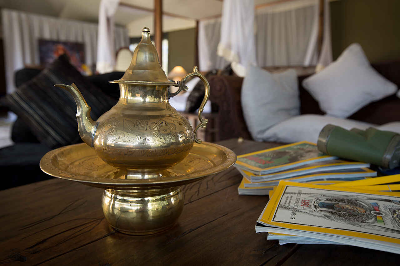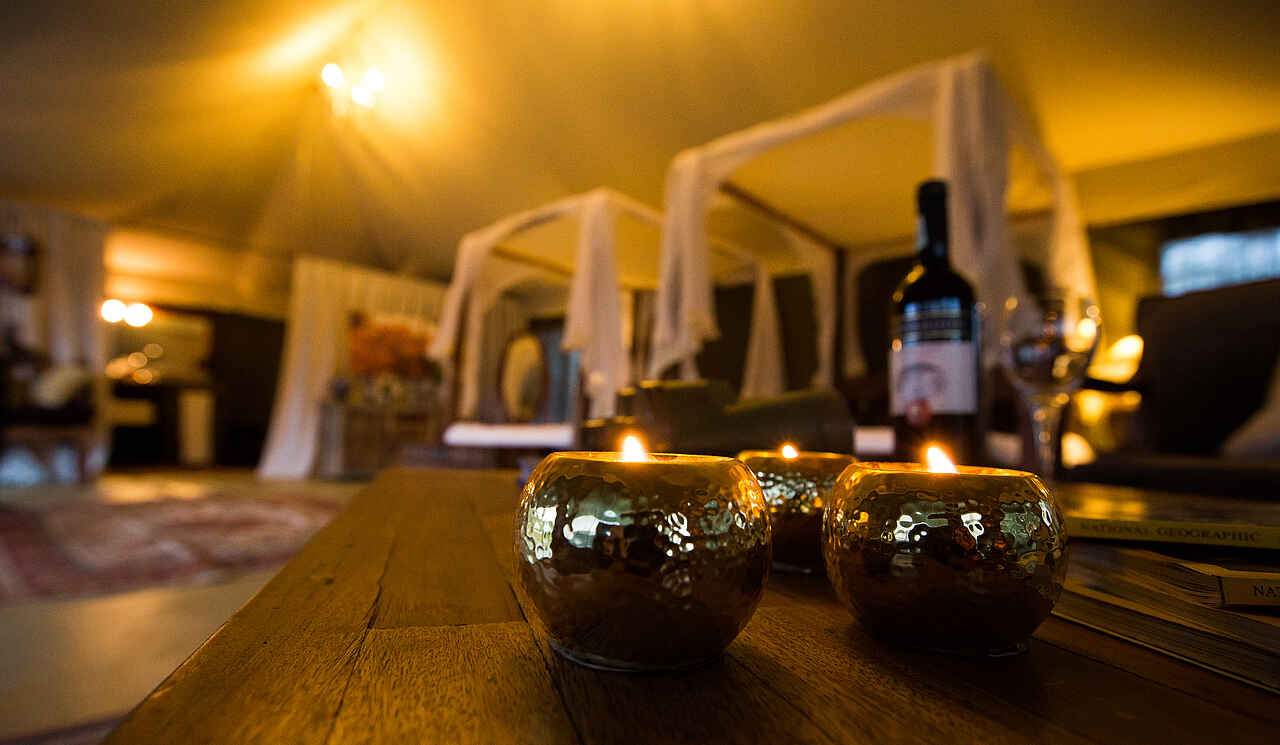 Reichhaltiges Frühstücksbuffet, Warmes Mittagessen oder Lunchbox zum Mitnehmen. Abends gemeinschaftliches Dinner. Kaffee, Tee und Wasser wird auf Wunsch im Zelt serviert. Die Gäste speisen gemeinsam im Speisesaal an individuellen Tischen, unter freiem Himmel in einer Tischgruppe oder privat auf der eigenen Veranda. Auf Unverträglichkeiten/Allergien etc. wird eingegangen.