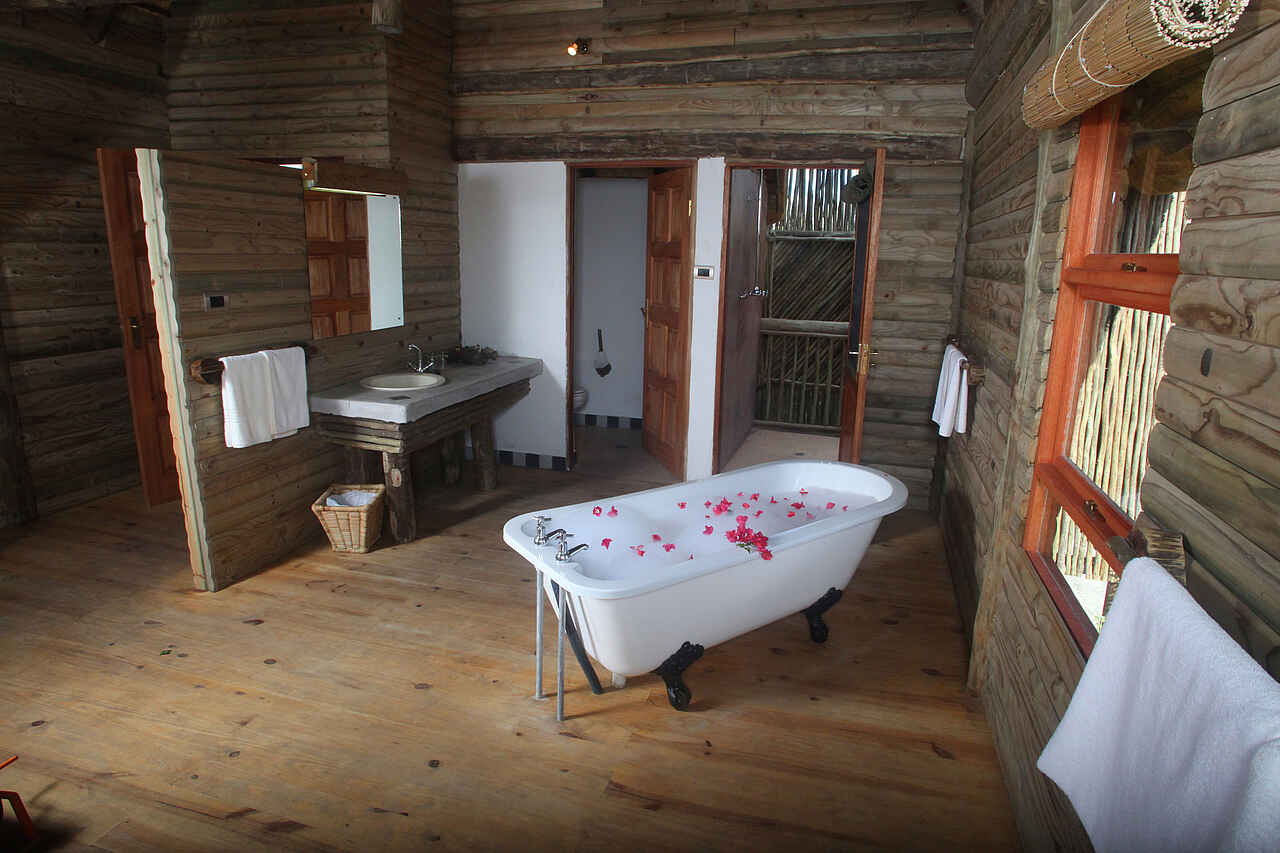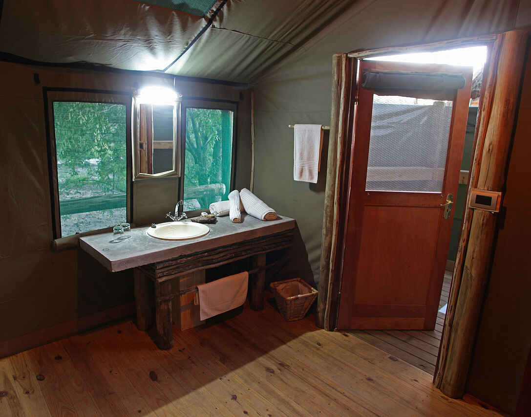 10 luxuriöse Zelte, die, genauso wie die 22 sehr genuin anmutenden Holzhütten (Chalets), alle mit einem eigenen Bad ausgestattet sind. Die sanitären Anlagen zeichnen sich durch die im freien liegenden Duschen aus, die über kaltes und warmes Wasser verfügen. Die Chalets sind seit neuestem mit Air Conditioning ausgestattet. Zudem gibt es einen Campingplatz, der für bis zu 150 Personen ausgelegt ist. Die dortigen sanitären Anlagen verfügen ebenfalls über warmes und kaltes Wasser.
