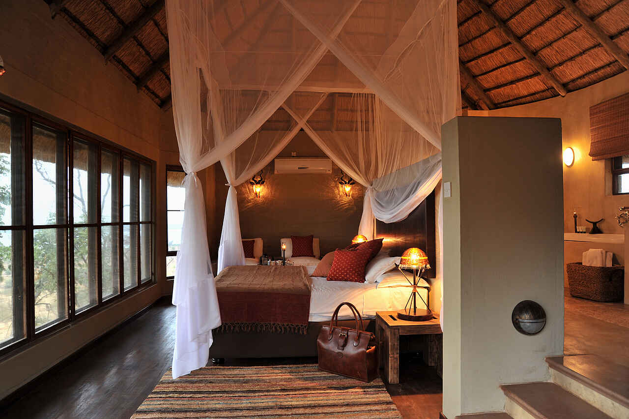 Für Gäste setehen 8 Suiten mit Panoramafenstern (6 Doppel- und 2 Triple Suites) zur Verfügung. Jede Suite mit Aussicht auf den Chobe River. Ausstattung: Badezimmer mit Indoor- und Outdoor-Dusche, private Veranda, Lounge, Ventilatoren, Klimaanlage, Minibar, Tee- und Kaffeebereiter, Moskitonetze.