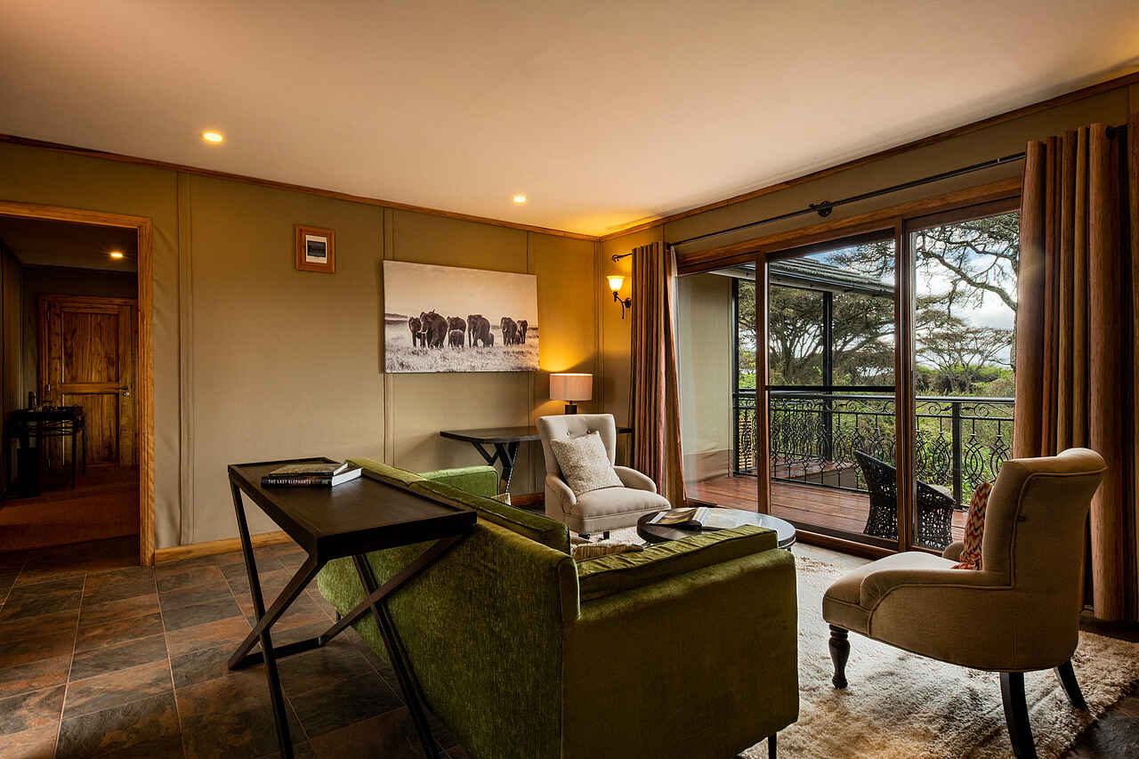 Die Zeltsuiten des Ngorongoro Lion’s Paw Camp verbinden Safari-Flair mit modernem Komfort. Große Betten mit Moskitonetzen, warme Farbtöne und edle Holzelemente schaffen ein behagliches Wohngefühl. Jedes Zelt verfügt über ein En-suite-Badezimmer mit Dusche, Waschbecken, Toilette und Warmwasser. Handtücher, Haartrockner und Pflegeprodukte liegen bereit. Auf der privaten Veranda eröffnet sich der Blick auf die üppige Vegetation am Kraterrand und das ruhige Hochland. Kaffee- und Teezubereitungsmöglichkeiten sowie Trinkwasser sind selbstverständlich vorhanden. Für Familien stehen großzügige Suiten mit zwei Schlafzimmern und separatem Wohnbereich zur Verfügung und bieten viel Platz für gemeinsame Stunden nach einem erlebnisreichen Safaritag.