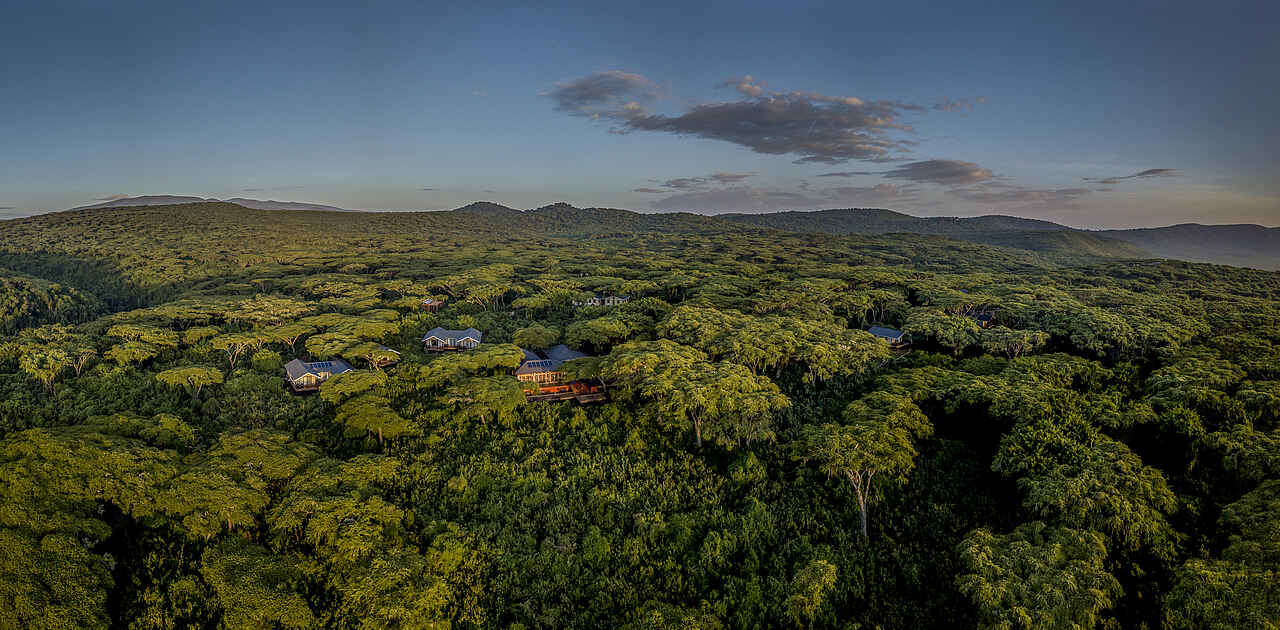 Das Ngorongoro Lion’s Paw Camp liegt im östlichen Bereich des Ngorongoro Conservation Area in Tansania, nahe der Straße, die in den Krater hinabführt. Die Umgebung ist geprägt von dichtem Wald und weiten Blicken über die Kraterlandschaft.