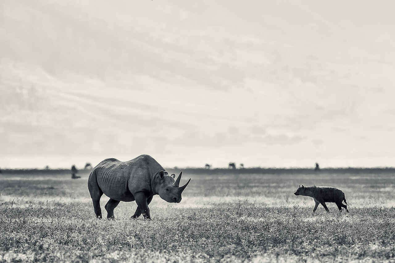 Im Ngorongoro-Krater findet man die Big Five: Spitzmaulnashorn, Elefant, Löwe, Leopard, Büffel. Außerdem sehr viele Tüpfelhyänen, Nilpferde, Thomson-Gazellen, Gnus, Zebras, Paviane, Grüne Meerkatzen, Elen-Antilopen, Schakale, Flamingos, verschiedene Greifvögel und Geier, Störche, Wasservögel. Giraffen gibt es nur oben am Kraterrand.