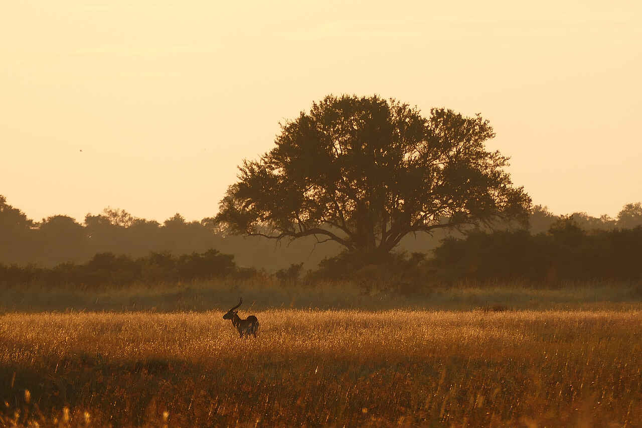 Der Nkasa Rupara Nationalpark liegt in einer subtropischen Klimazone mit ausgeprägter Regen- und Trockenzeit. Die Regenzeit dauert von Dezember bis März und bringt üppiges Grün sowie beste Bedingungen für Vogelbeobachtungen. Die Trockenzeit von Mai bis Oktober ist die ideale Zeit für Wildtierbeobachtungen, da die Tiere sich an den verbleibenden Wasserstellen versammeln. Tagsüber liegen die Temperaturen dann zwischen 25 und 30 Grad, nachts kann es im Juni und Juli deutlich abkühlen. Im Oktober wird es heiß mit Temperaturen über 35 Grad, bevor die ersten Gewitter die Regenzeit einleiten.