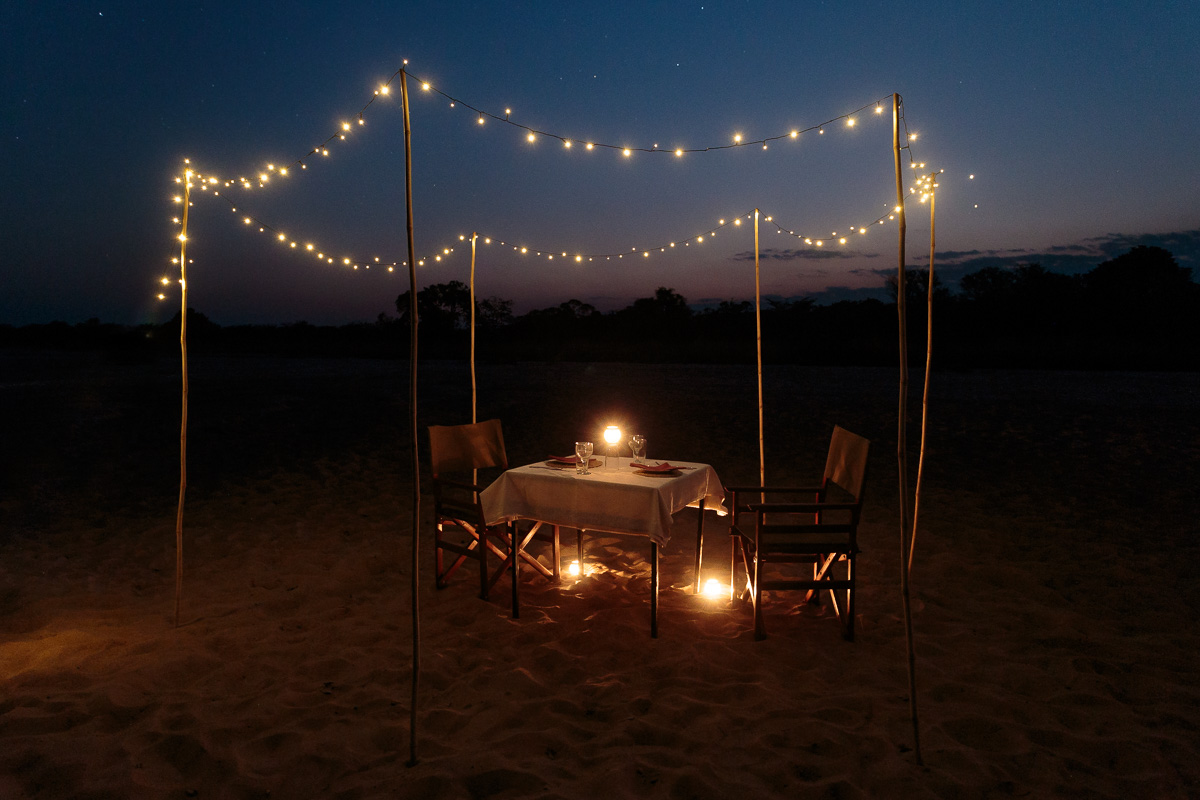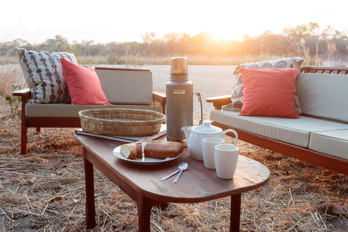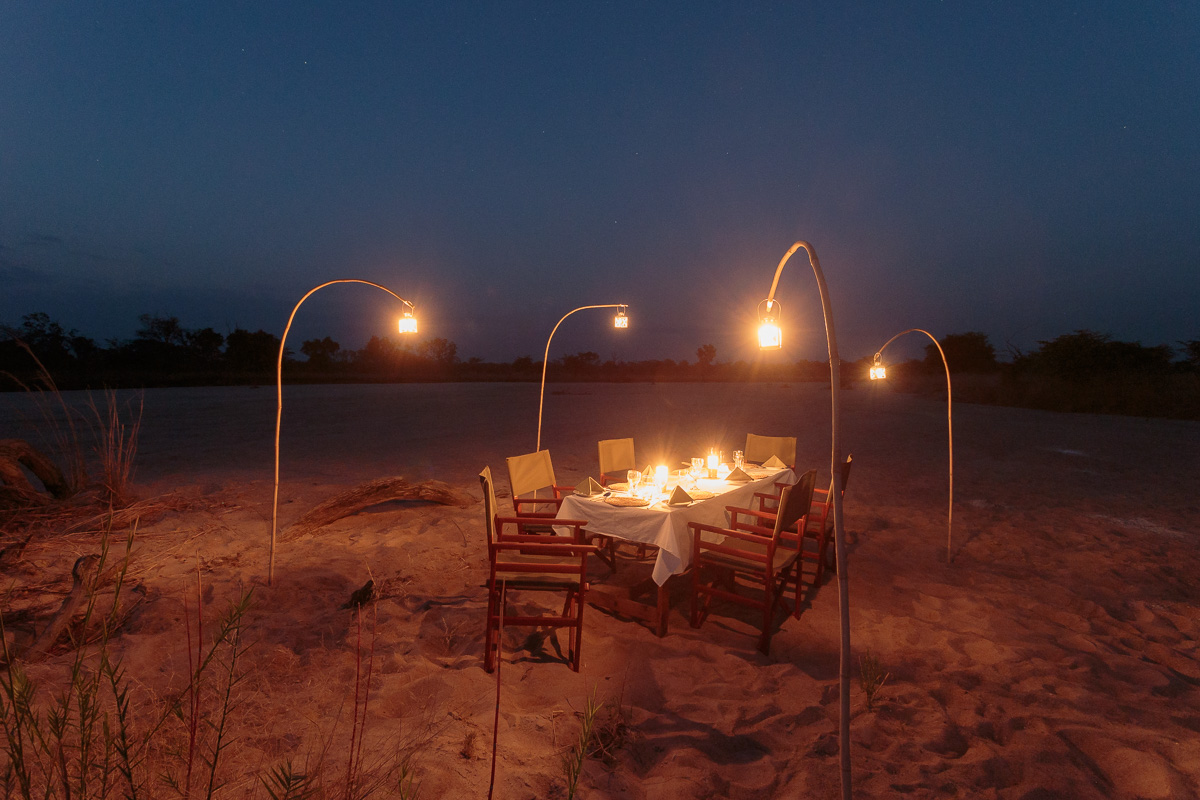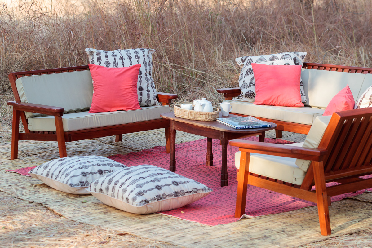 Es gibt keinen überdachten Zantralberich. Stattdessen wird am Ufer des Mushilashi River auf Teppichen ein offenes Wohnzimmer mit Sofas, Sesseln und Beistelltisch eingerichtet. Etwas abseits werden zwischen Bäumen Leintücher als Schattendächer aufgespannt, darunter ein weiteres Sofa. Speisen werden meist unter freiem Himmel entweder im Schatten der Bäume oder im Flussbett serviert. Eine einfache Bar wird am Stamm eines großen Baumes eingerichtet.