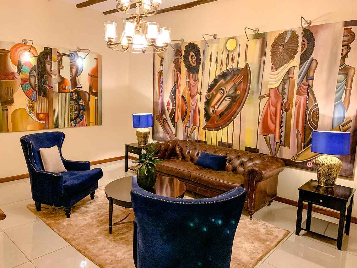Das Restaurant zeichnet sich durch ein stilvolles und einladendes Ambiente aus, akzentuiert durch afrikanische Kunstwerke an den Wänden und gemütliche Sessel an den Tischen. Die Menüs sind sorgfältig zusammengestellt und präsentieren eine Vielfalt an internationalen und lokalen Spezialitäten, die von einer gut ausgewählten Weinkarte begleitet werden. Für Gäste des Hotels ist das Frühstück inklusive.