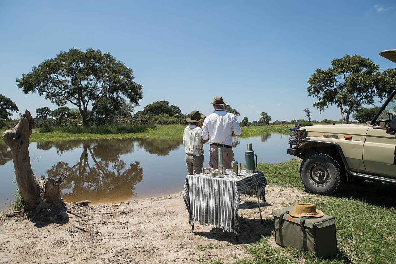 Morgens und nachmittags Gamedrive, mit Geländewagen, Mokoroausflüge ( traditionelles Kanu), abends Tanz und Gesang an der Boma am Flussufer, Tagestouren in die umliegenden Gebiete wie Khwai Game Reserve, Moremi Game Reserve, Savuti-Sumpf oder Mababe Senke möglich. Angeln möglich, Hubschraubertouren im R44 gegen Aufpreis buchbar, einwöchige Yoga Safari buchbar.