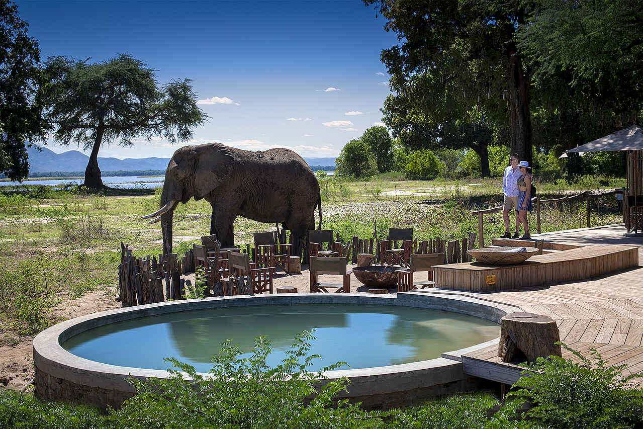 Das Nyamatusi Camp ist eine anspruchsvolle Unterkunft mit Zügen von Luxus im unteren Teil des Mana Pools National Park. Das Hauptgebäude hat zwei Stockwerke und bietet darum einen besonders guten Blick auf den Sambesi. Die Gästechalets sind stilvoll in Holz eingerichtet, mit privaten Bädern und einem Plunge Pool, der gerade in der Mana-Pools-Hochsaison eine wirklich nützliche Einrichtung ist.