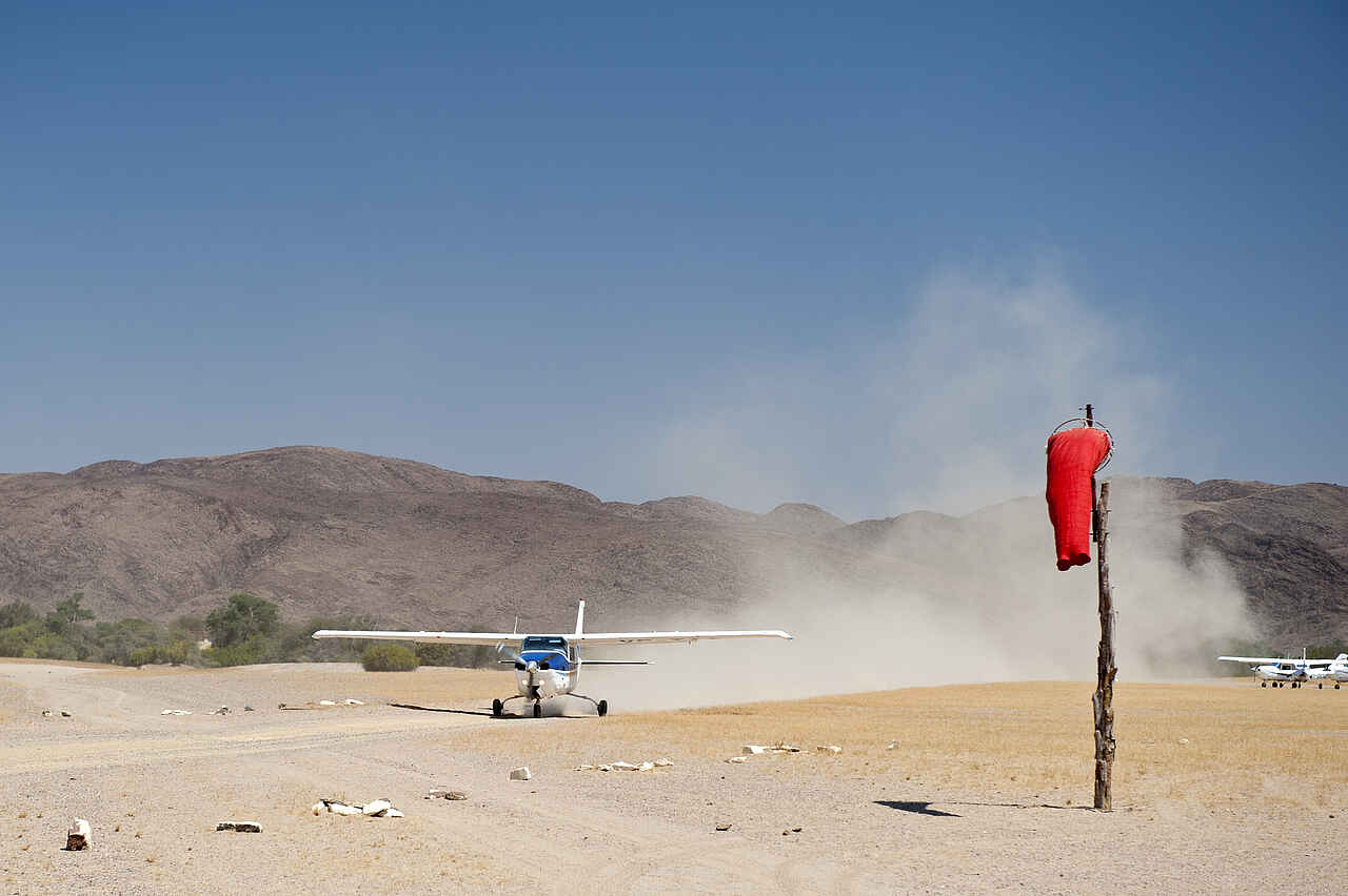 Die Okahirongo Elephant Lodge ist am besten über den kleinen Flugplatz Purros erreichbar, der etwa 30 bis 45 Minuten von der Lodge entfernt liegt. Es gibt regelmäßige Charterflüge von Windhoek, der Hauptstadt Namibias, nach Purros. Von dort aus erfolgt der Transfer zur Lodge per Geländewagen, eine Fahrt durch die spektakuläre Landschaft des Kaokolands.