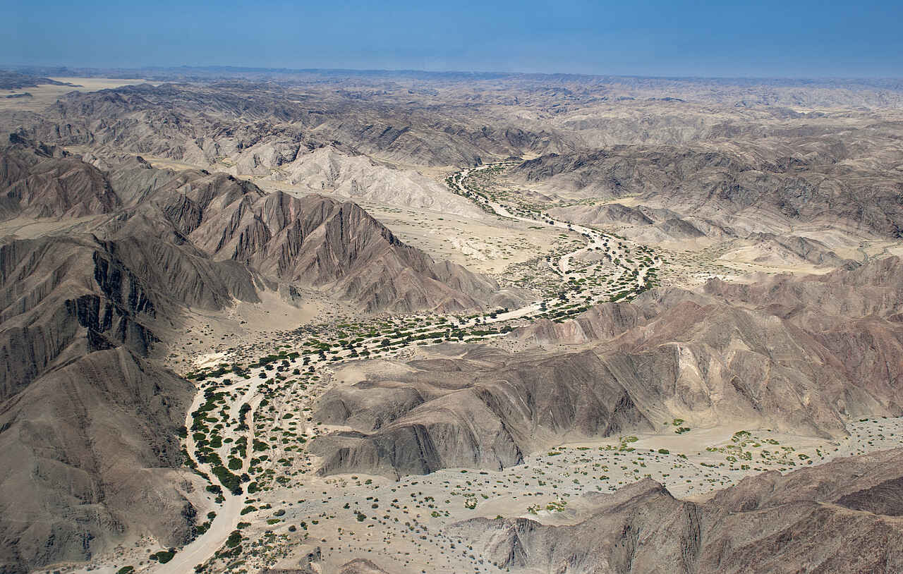 Die Okahirongo Elephant Lodge liegt im abgelegenen Kaokoland im Nordwesten Namibias, in der Kunene-Region, die für ihre dramatischen Landschaften und die seltenen Wüstenelefanten bekannt ist. Sie befindet sich im Purros-Naturschutzgebiet, am Ufer des Hoarusib, etwa 55 Kilometer von der Skelettküste und 200 Kilometer von Kunene entfernt.