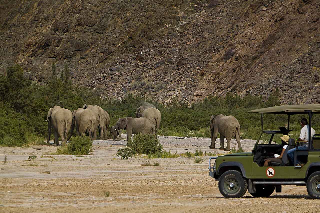 Die Region rund um die Okahirongo Elephant Lodge ist Heimat einiger der faszinierendsten Wildtiere Afrikas, die sich an das raue Wüstenklima angepasst haben. Gäste können hier die seltenen Wüstenelefanten beobachten, die durch die trockenen Flussbetten streifen. Darüber hinaus gibt es gute Chancen, Giraffen, Hartmann-Bergzebras, Oryx-Antilopen, Springböcke und vielleicht sogar Wüstenlöwen zu sehen. Die Vogelwelt ist ebenfalls bemerkenswert von den mächtigen Geiern bis hin zu den zierlichen Bienenfressern, sowie den unverwechselbaren Rüppelltrappen und Fleckentokos.