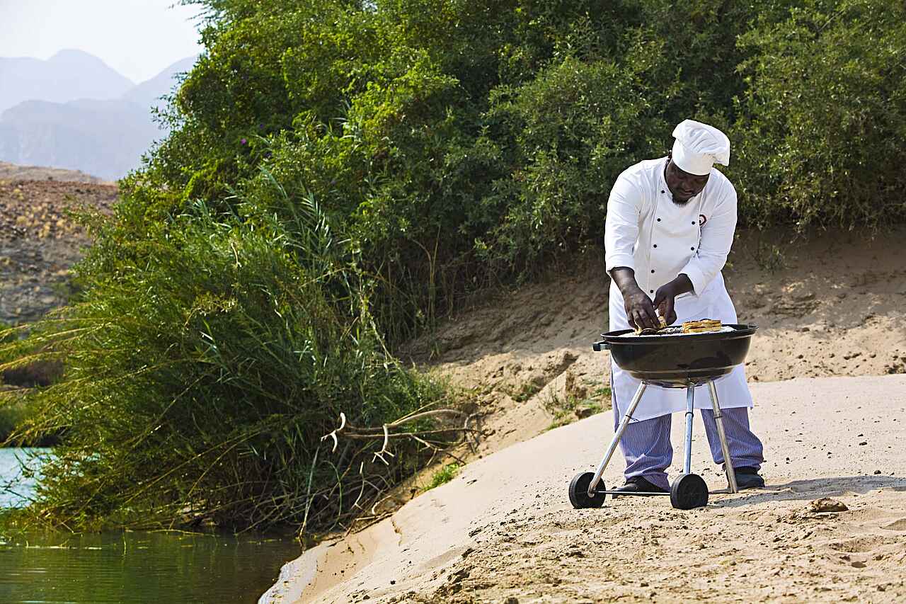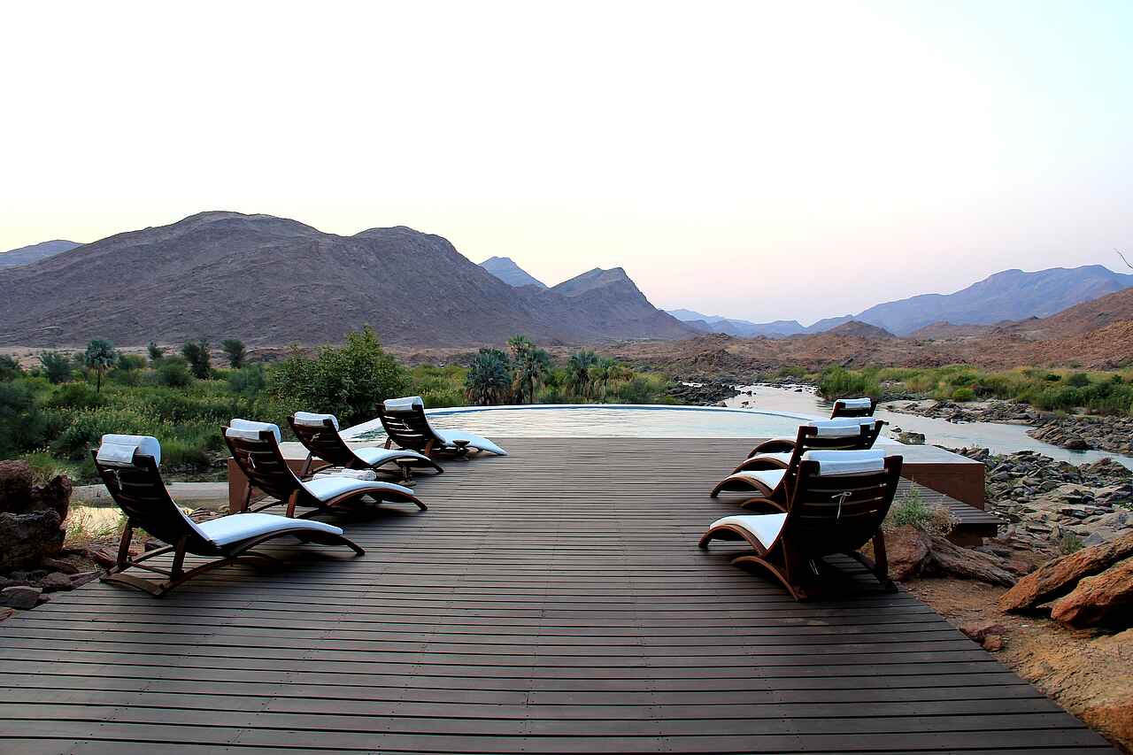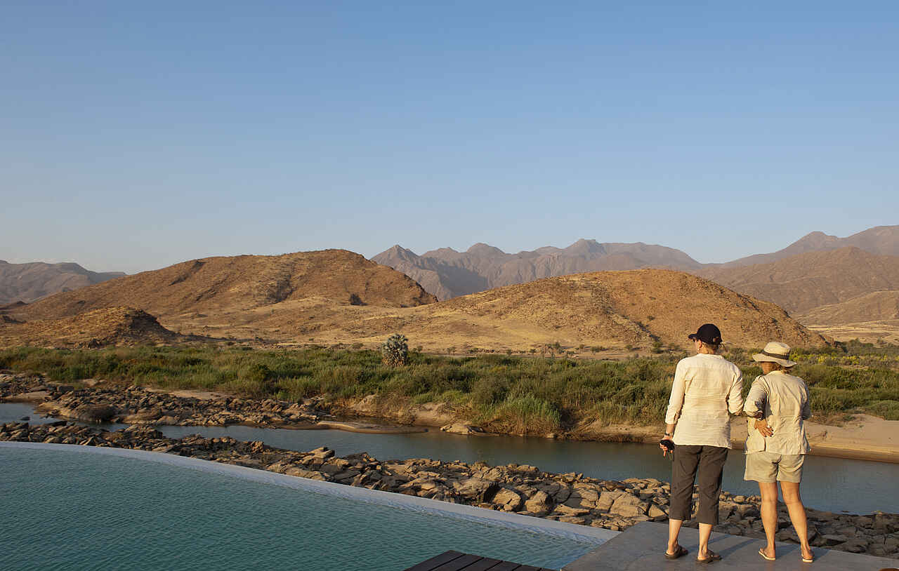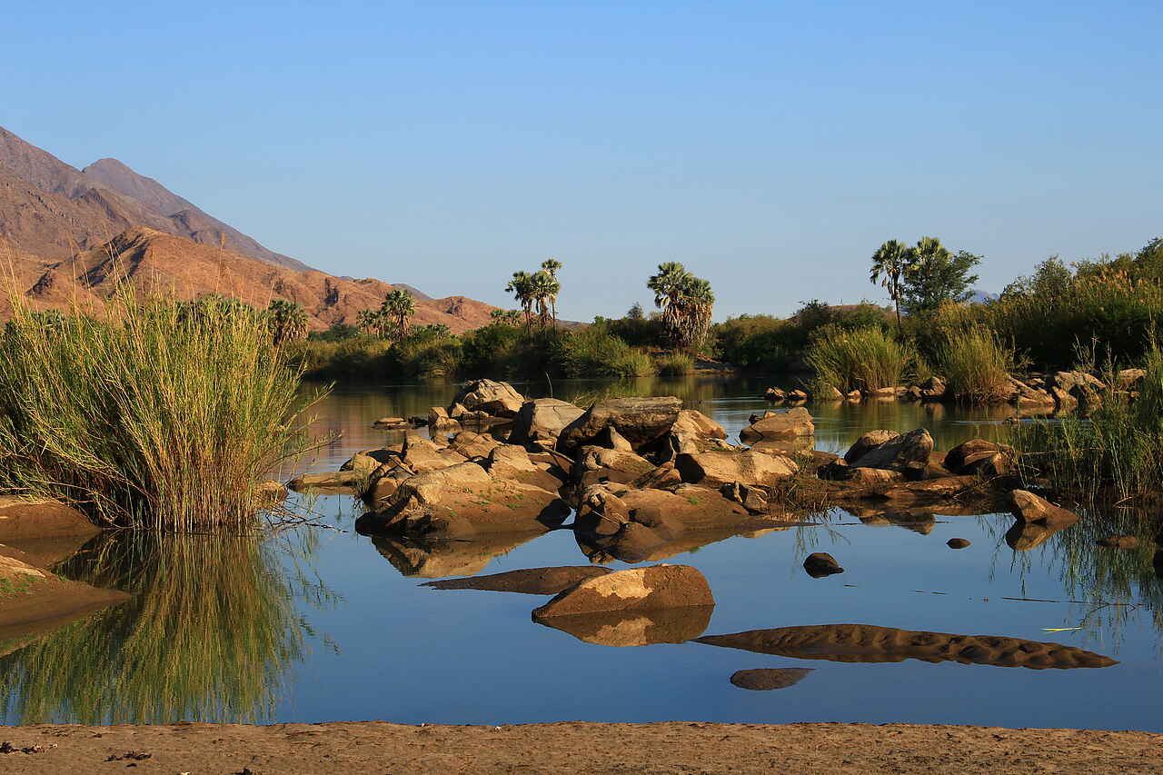 Unberührte Wildnis zu Wasser und Land laden Sie ein zu morgendlichen Spaziergängen, Fahrten in die Berge oder die Sanddünen, Pirschfahrten ins Kunene-Gebiet, Angeln, Fliegenfischen, Bootstouren oder einem Flug zu den Epupa-Fällen. Lernen Sie beim Besuch eines lokalen Himba-Dorfes Gebräuche, Traditionen und Religion dieses halbnomadisch lebenden Volkes kennen!