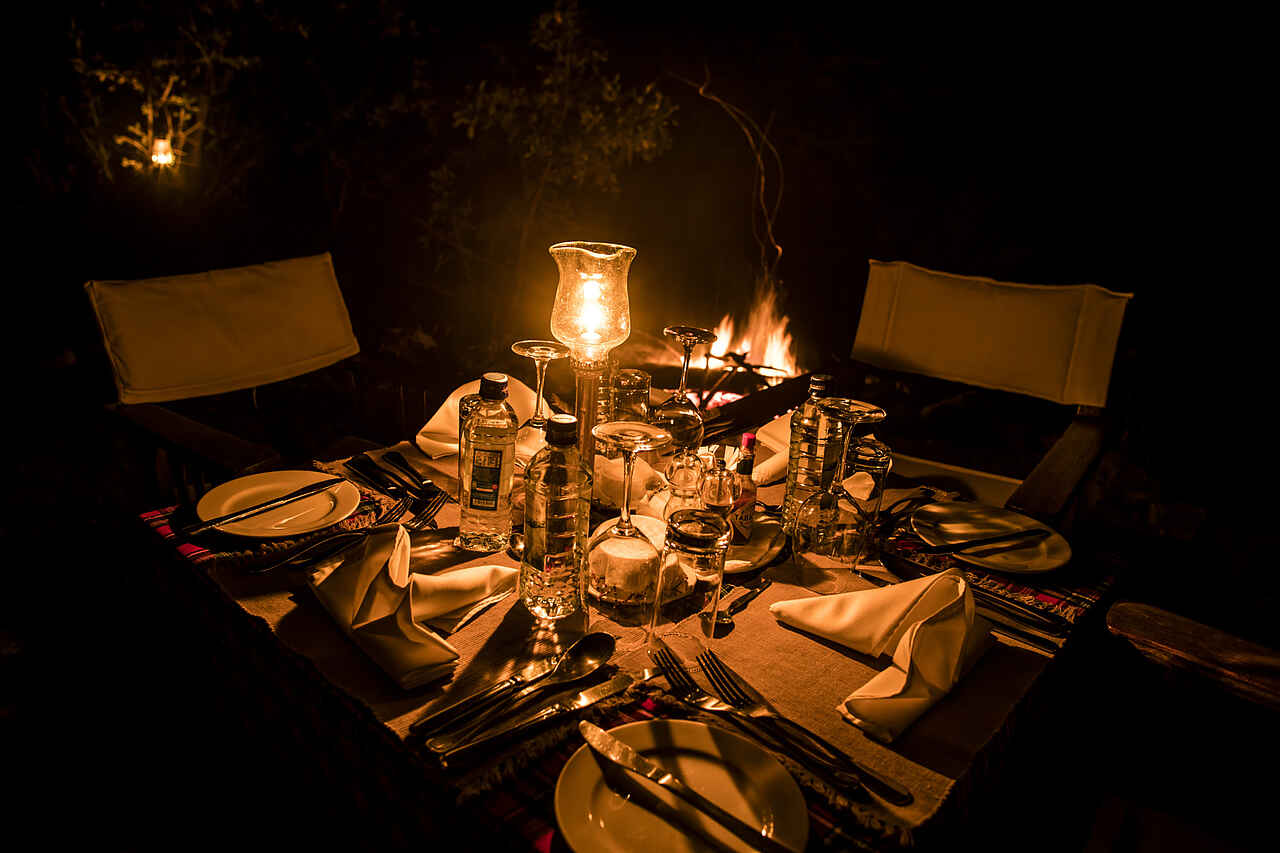 Das Nina Tent zeichnet sich durch ein weitläufiges Schlafzimmer aus, das das Wohnzimmer mit Sitzecken und Schreibtisch integriert und in ein Ensuite-Badezimmer übergeht. Über alle Zelte zieht sich riesiges Zeltdach, das die privaten Terrassen beschattet, auf denen Mobiliar und offene Feuerstellen zum Verweilen einladen; die Hanglage des Camps optimiert die Ausblicke von den herrlichen Terrassen.