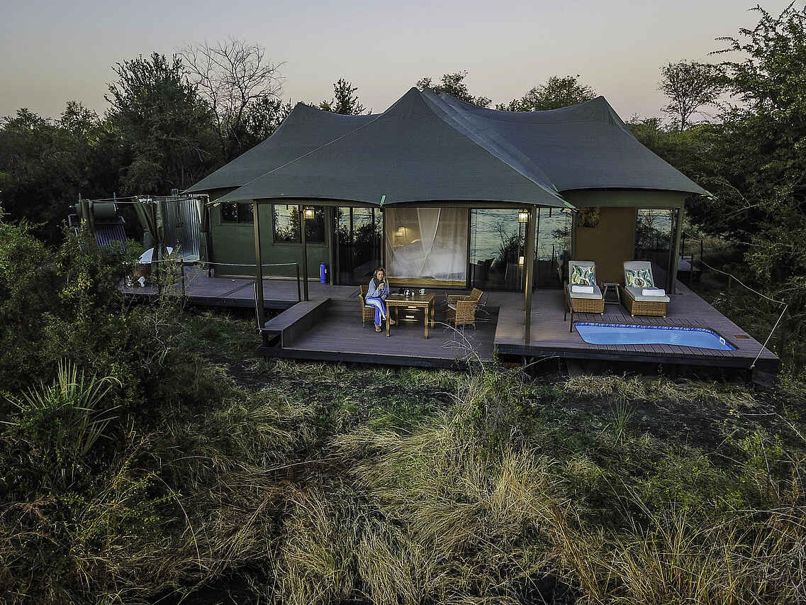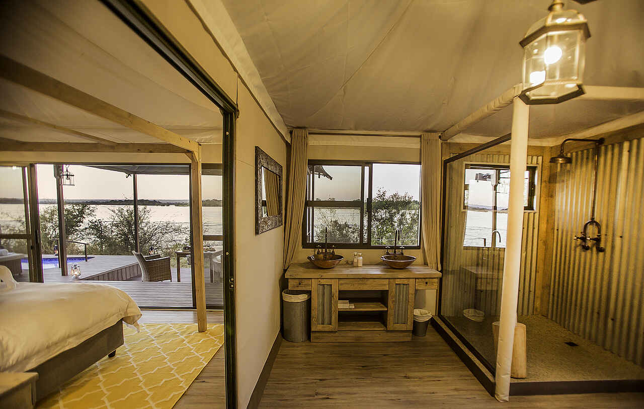 Die Gästeunterkünfte der Old Drift Lodge sind entlang des Flussufers auf erhöhten Holzdecks errichtet, um die Aussicht auf den Sambesi optimal zu nutzen. Dank hoher Decken und heller Leinwandwände wirken die Innenräume besonders hell und luftig. Jede Suite ist mit einem Kingsize-Himmelbett oder zwei Einzelbetten mit Moskitonetz, einem Schreibtisch und einer gemütlichen Sitzecke ausgestattet. Zur weiteren Ausstattung gehören Klimaanlage, Deckenventilator, Minibar sowie eine Tee- und Kaffeestation.