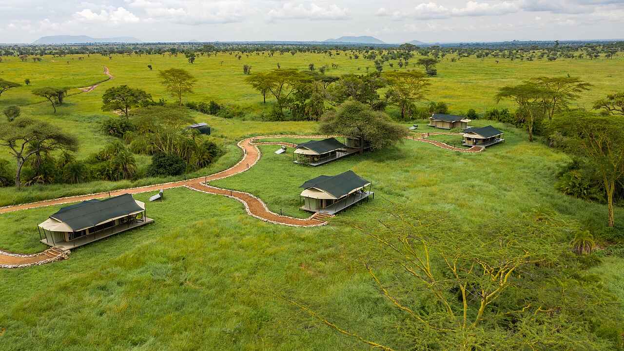 Hier ist eine flüssiger formulierte Version: Das Ole Serai Luxury Camp - Turner Springs liegt im Herzen der Serengeti in Tansania und bietet atemberaubende Ausblicke sowie ein unvergleichliches Safari-Erlebnis. Die zentrale Lage in der Serengeti, bekannt für die jährliche Migration von Millionen Gnus und Zebras, macht es zum idealen Ort für Wildtierbeobachtungen. Gäste können direkt von ihrem Zelt aus Tiere beobachten und die natürliche Schönheit der Serengeti genießen. Das Camp bietet elegante Unterkünfte und erstklassigen Service, der keine Wünsche offenlässt.