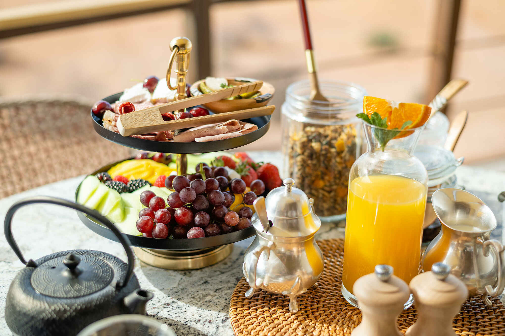 Die Mahlzeiten werden von einem privaten Koch zubereitet und können flexibel im offenen Essbereich, auf der Terrasse oder in der Pizza-Boma eingenommen werden. Die Küche basiert auf frischen, regionalen Zutaten und wird individuell auf die Wünsche der Gäste abgestimmt. Frühstück, Mittagessen, Nachmittagssnacks und Abendessen sind ebenso im Aufenthalt enthalten wie hochwertige Weine und Spirituosen. Der Service erfolgt durch einen persönlichen Butler. Vegetarische, vegane oder glutenfreie Optionen sind problemlos möglich.