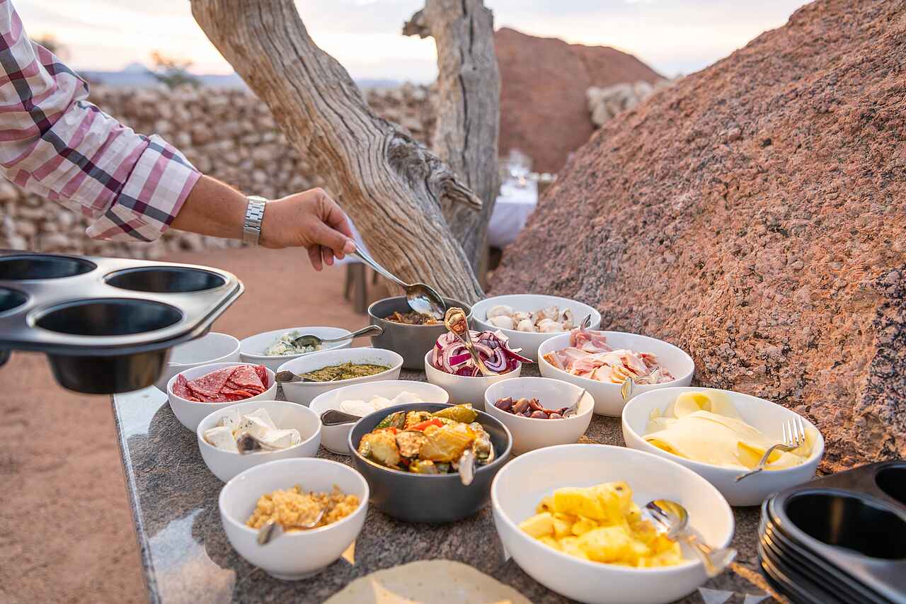 Alle Mahlzeiten (Frühstück, Mittag- und Abendessen, Picknicks und Sundowner) sowie lokale Getränke (Bier, Softdrinks, Wasser, Hauswein und Gin & Tonic) sind im Preis inkludiert. Premium-Alkoholika, importierter Alkohol und Spirituosen sind exkluisive. Es werden außerdem Weinproben angeboten.