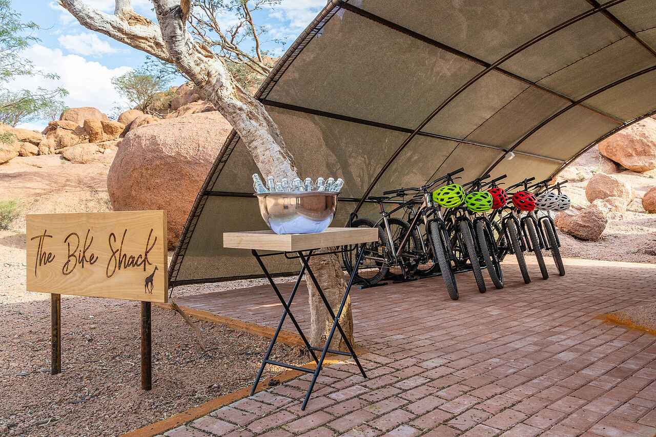 Das Kingsize-Bett wird durch eine raffinierte Klimaanlage ("Evening Breeze") gekühlt. Das Besondere an dem Bett: es kann auf die private Veranda gerollt werden, um die Nacht unter dem Sternenhimmel zu verbringen. Die bizarren Felsen sind in die Gestaltung der teils offenen En-suite-Badezimmer integriert. Neben zwei großen Waschbecken aus Naturstein gibt es eine Warmwasserdusche und eine moderne Spültoilette. Die Zeltsuiten verfügen über Wlan.