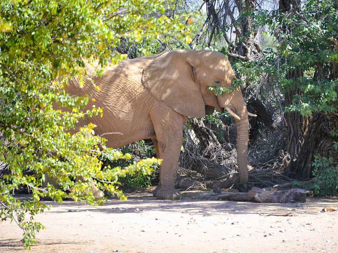 Namibia lässt sich ganzjährig gut bereisen, da es keine ungünstige Jahreszeit gibt, aber auch keine Zeit, die signifikant besser ist als andere. Von Dezember bis März ist die grüne Jahreszeit. Bei Regen verwandelt sich die felsige Landschaft in einen grünen Teppich, Flussbetten führen plötzlich Wasser. Kurze, heftige Regenschauer, teils höhere Temperaturen und sensationelle Sonnenuntergänge sind typisch für diese Saison. Nach der Regensaison kehrt der Wüstenlook zurück. Von Mai bis Juli sind die Temperaturen tagsüber angenehm, abends und morgens ist es kühl. Der Oktober ist der heißeste und trockenste Monat und ideal, um in Flusstälern Elefanten auf der Suche nach Wasser zu beobachten.