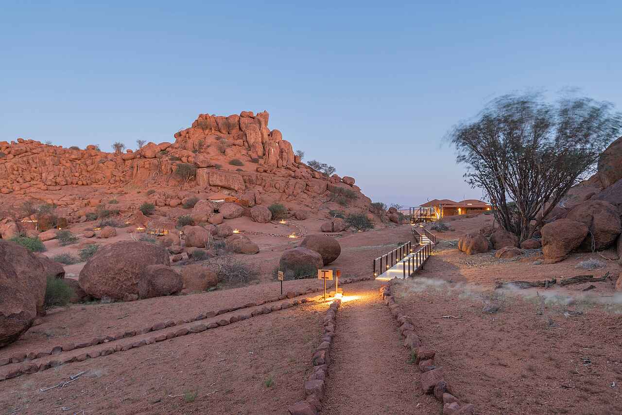 Das Oduli Ridge liegt außerdem nur 20 Minuten von der UNESCO-Welterbestätte Twyfelfontein entfernt. Die historisch beeindruckenden Felszeichnungenen sollte man nicht verpassen!