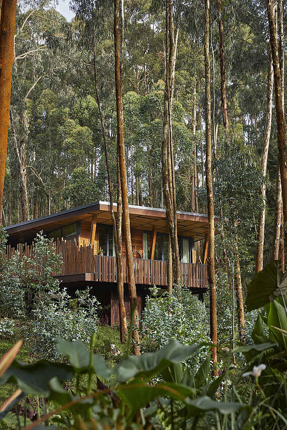 Luxuriöse Lodge und Ausgangspunkt zum Besuch bei einer der 10 Gorillafamilien sowie den Golden Monkeys, Wanderungen, Kanutouren, Besichtigung des Diane-Fossey-Erbes und Ausflüge in den Nationalpark.