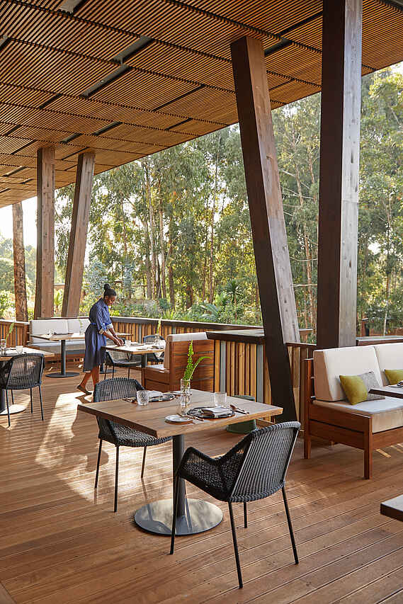 Alle Mahlzeiten und Getränke inklusive, die Küche bietet lokale wie internationale Speisen mit Zutaten aus regionalem Anbau sowie eine Bar mit Weinen, Bieren, Spirituosen und Cocktails.
