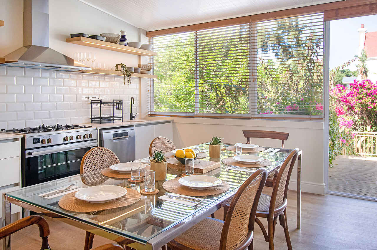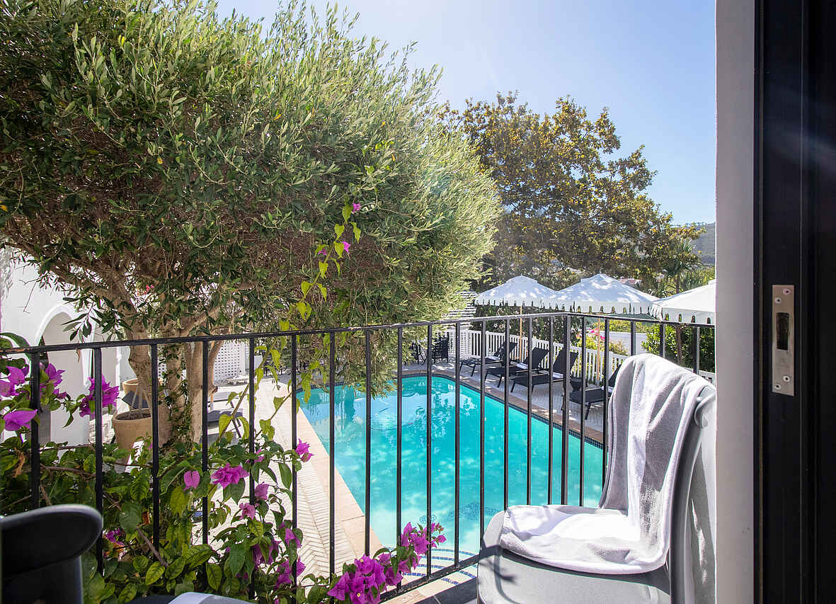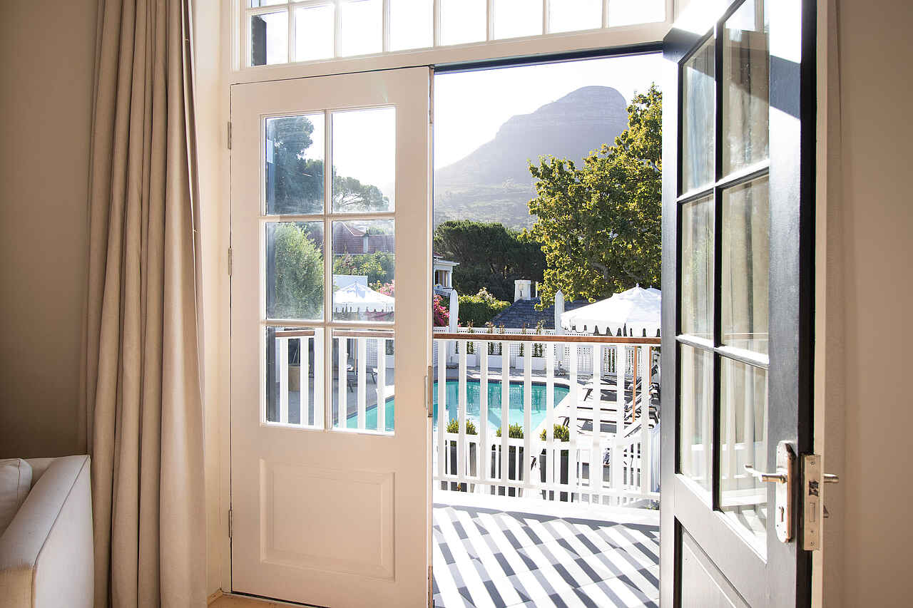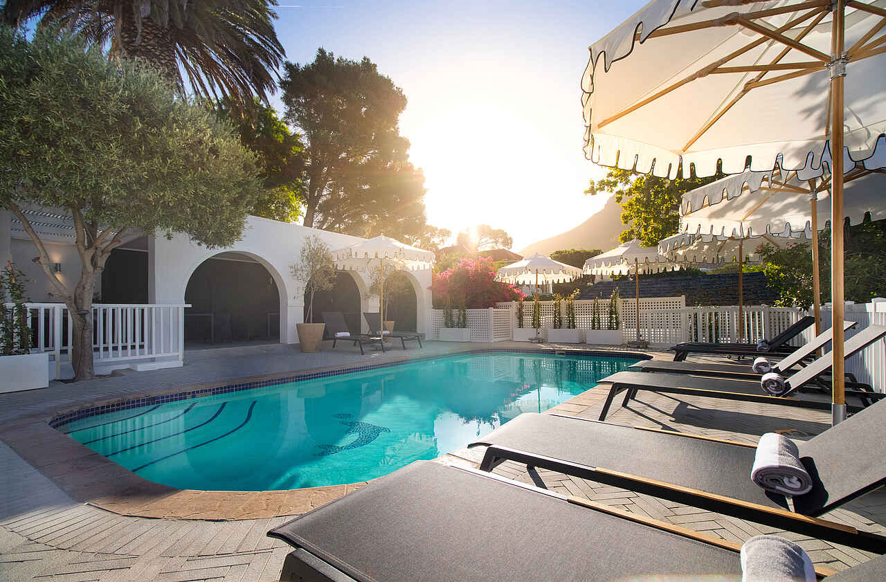 Der Garten des One Kensington Boutique Hotels ist ein stiller Rückzugsort mit Blick auf den Tafelberg. Hier lässt sich das Frühstück unter freiem Himmel ebenso genießen wie ein ruhiger Nachmittagskaffee. Der Poolbereich bietet bequeme Liegen und lädt zum Entspannen ein. Die Lounge verbindet klassische Eleganz mit wohnlichem Flair, ergänzt durch eine kleine Bar, ausgewählte Kunstwerke und eine Bibliothek für ruhige Lesestunden. Die Rezeption ist tagsüber besetzt und sichere Parkplätze stehen bereit.