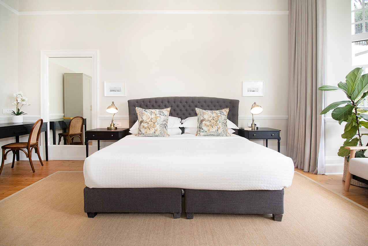 Die zehn Zimmer des One Kensington Boutique Hotels sind weitläufig und elegant gestaltet. Hohe Decken, dunkle Holzböden und stilvoll ausgewählte Möbel verleihen ihnen Charakter, während helle Farben und viel Tageslicht für Leichtigkeit und Ruhe sorgen. Alle Unterkünfte sind mit King-Size-Bett oder zwei Einzelbetten, Klimaanlage, Safe, Smart-TV, kostenlosem WLAN, Minibar sowie Kaffee- und Teezubereitung ausgestattet.