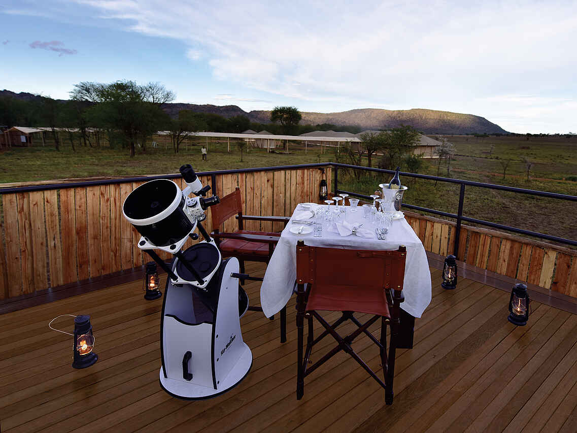Dazu gibt es einen kleinen Souvenir-Shop, der auch Kleidung verkauft, für den Fall, dass unterwegs Gepäck verloren ging. Schließlich gibt es noch eine Boma und ein kleines Observatorium mit Teleskop zur Beobachtung des Sternenhimmels.