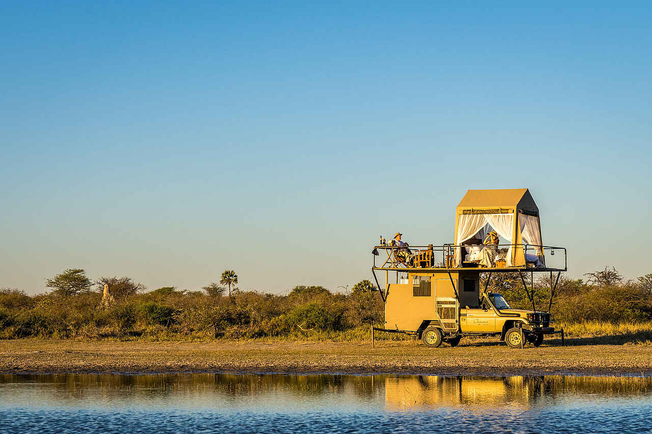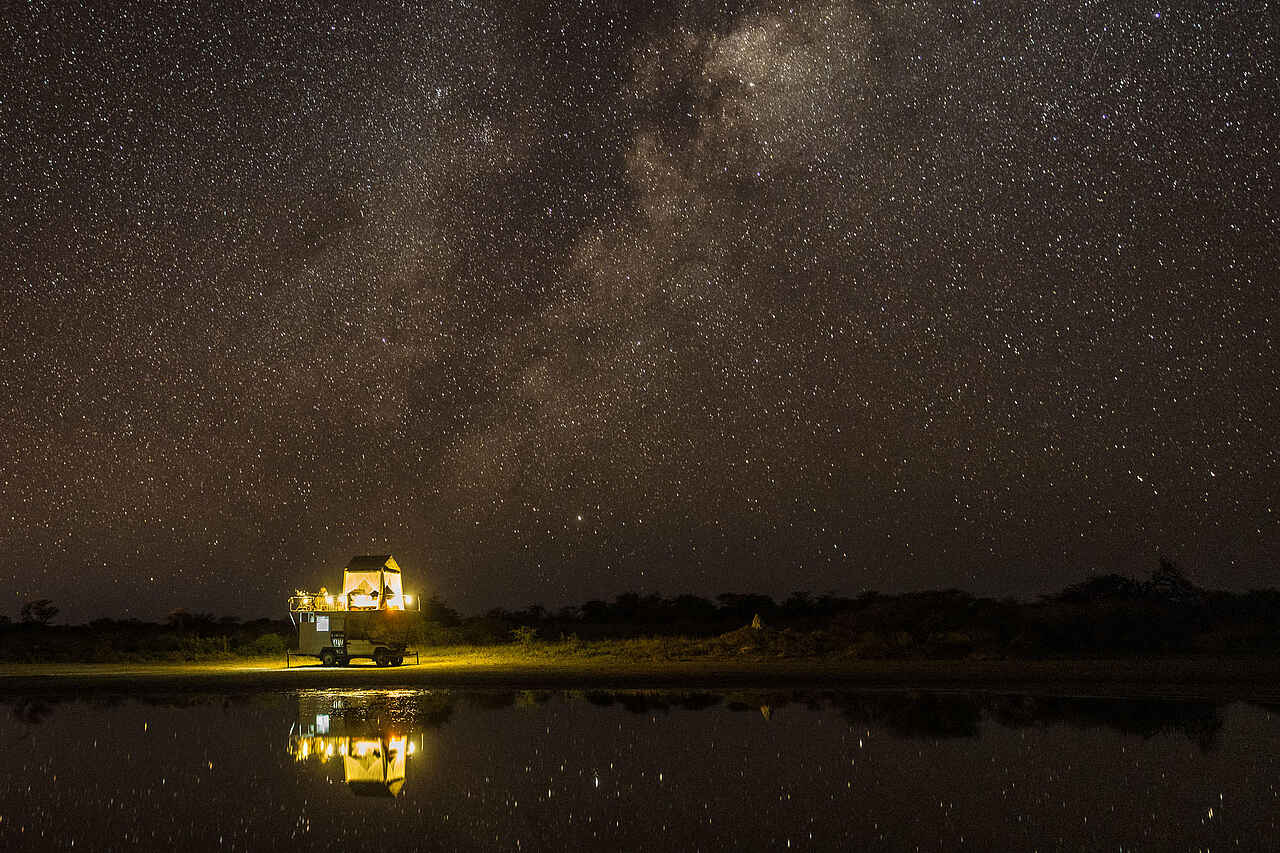 Eine außergewöhnliche und einzigartige Erfahrung ist es, eine Nacht auf dem Dream Cruiser zu verbringen. Der maßgefertigte Land Cruiser ist raffiniert mit einem Badezimmer (komplett mit WC und Dusche) im unteren Bereich und einem traumhaften Schlafzimmer auf dem Dach ausgestattet. Das Fahrzeug wird in Nähe eines Wasserlochs geparkt und nachdem man ein köstliches Picknick-Dinner genossen hat, wird man für die Nacht allein gelassen. Falls Unterstützung benötigt wird, steht ein Funkgerät zur Verfügung, um einen Ranger zu kontaktieren.